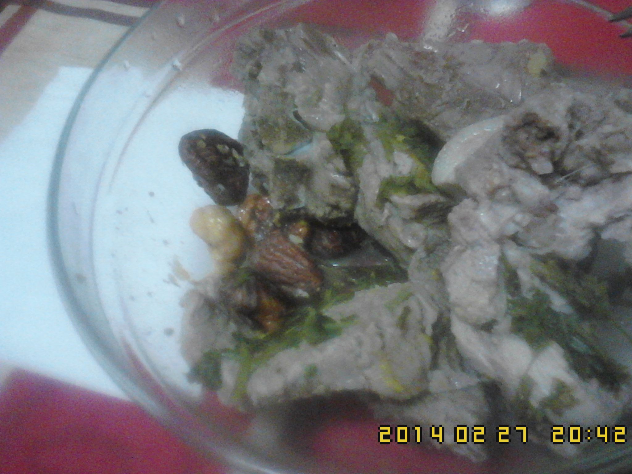 3) Na tampa varoma,ponha a carne temperada.30m-V2-varoma.Ultimos 10m,ponha as castanhas descascadas.Bom apetite.