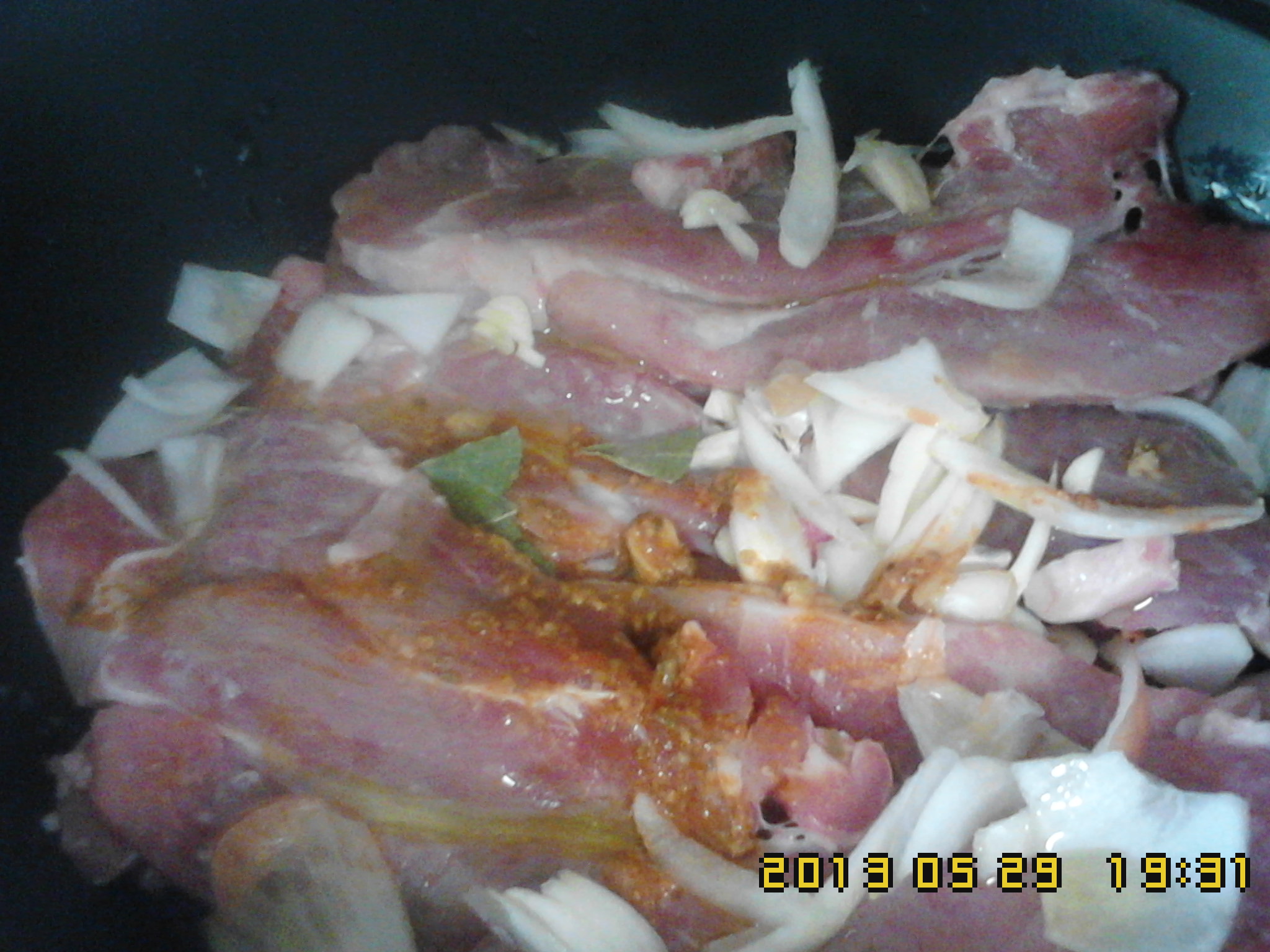 1-Temperar as febras,num travessa coloque as febras,sal,limão(20ml vinho branco),alhos cortados,aguarde 30m.2-Coloque o copo,com a água tape ponha a tampa de varoma,com os bifes temperado, loiro,mais o Jalpur de manga,besuntado os bifes.Não carregue muito com estas especiarias,ponha leve,ou se gosta de picante ponha á sua maneira.3-Ponha o azeite em cima dos bifes.V2-varoma 30m.Pode,aproveitar,um pedaço do molho,450ml,mais 400ml de água,para fazer um arroz de cenoura.Faça um arroz de cenoura da bimby.Bom apetite!
