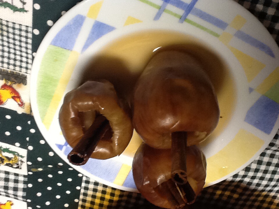 - 3 maçãs inteiras, 3 pausde canela, açúcar amarelo q.b