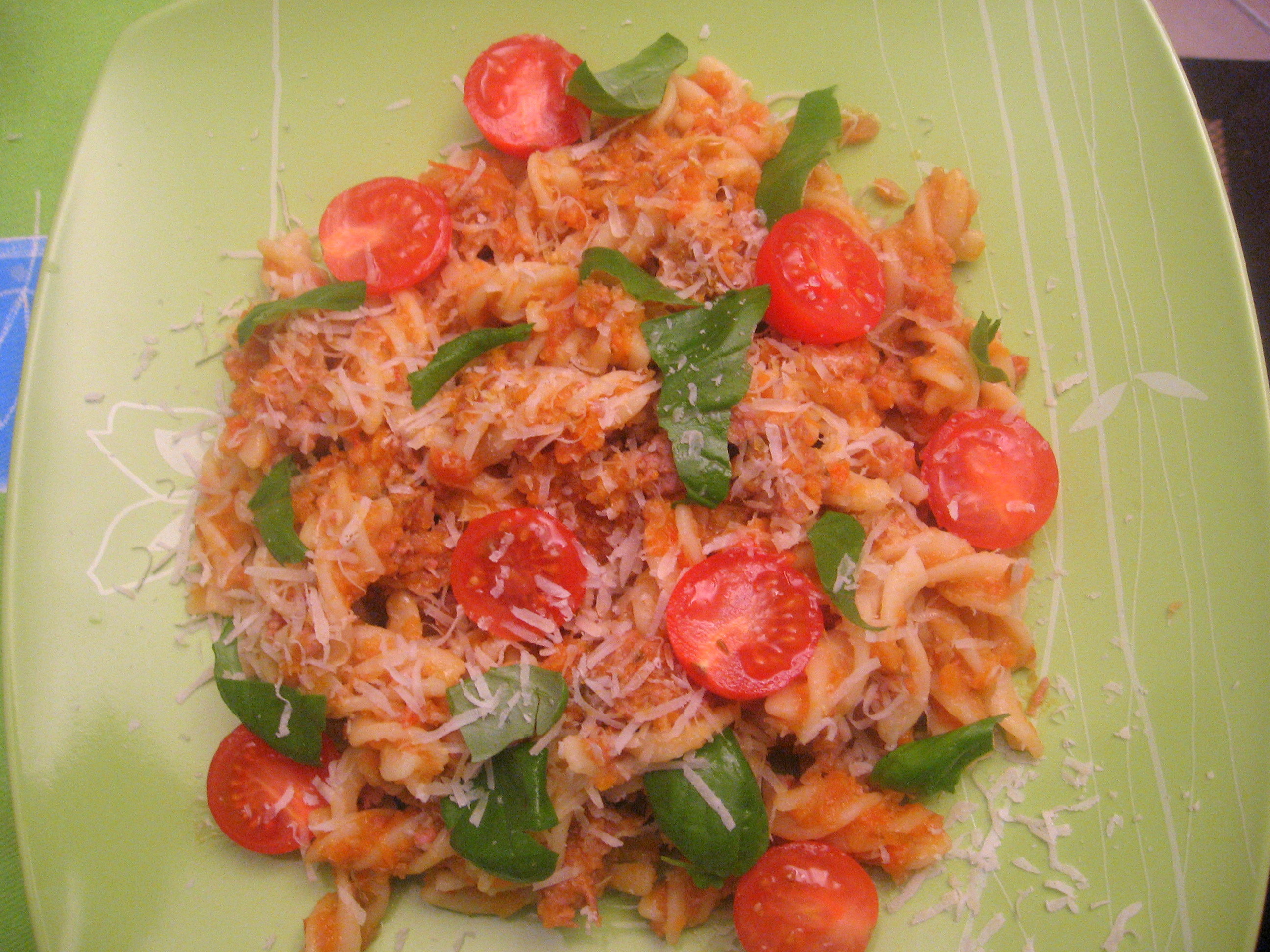 "Velocidade inversa" / vel 1. Retire e escorra com a ajuda da Varoma, reserve a água da cozedura, envolva a massa com um fio de azeite e reserve.Coloque no copo o azeite, a cebola, o alho, a cenoura, o aipo e a malagueta e pique 10 seg/ vel 5. Adicione as salsichas, o vinagre, o tomate, 200 g da água da cozedura, 1 c. de chá de sal, os oregãos e a pimenta e programe 8 min /Varoma/ vel 1. Retire e envolva a bolonhesa com a massa e polvilhe com o queijo ralado. Sirva quente. Pode ainda acompanhar com folhas de mangericão frescas e tomate cherry, que fica muito bom.