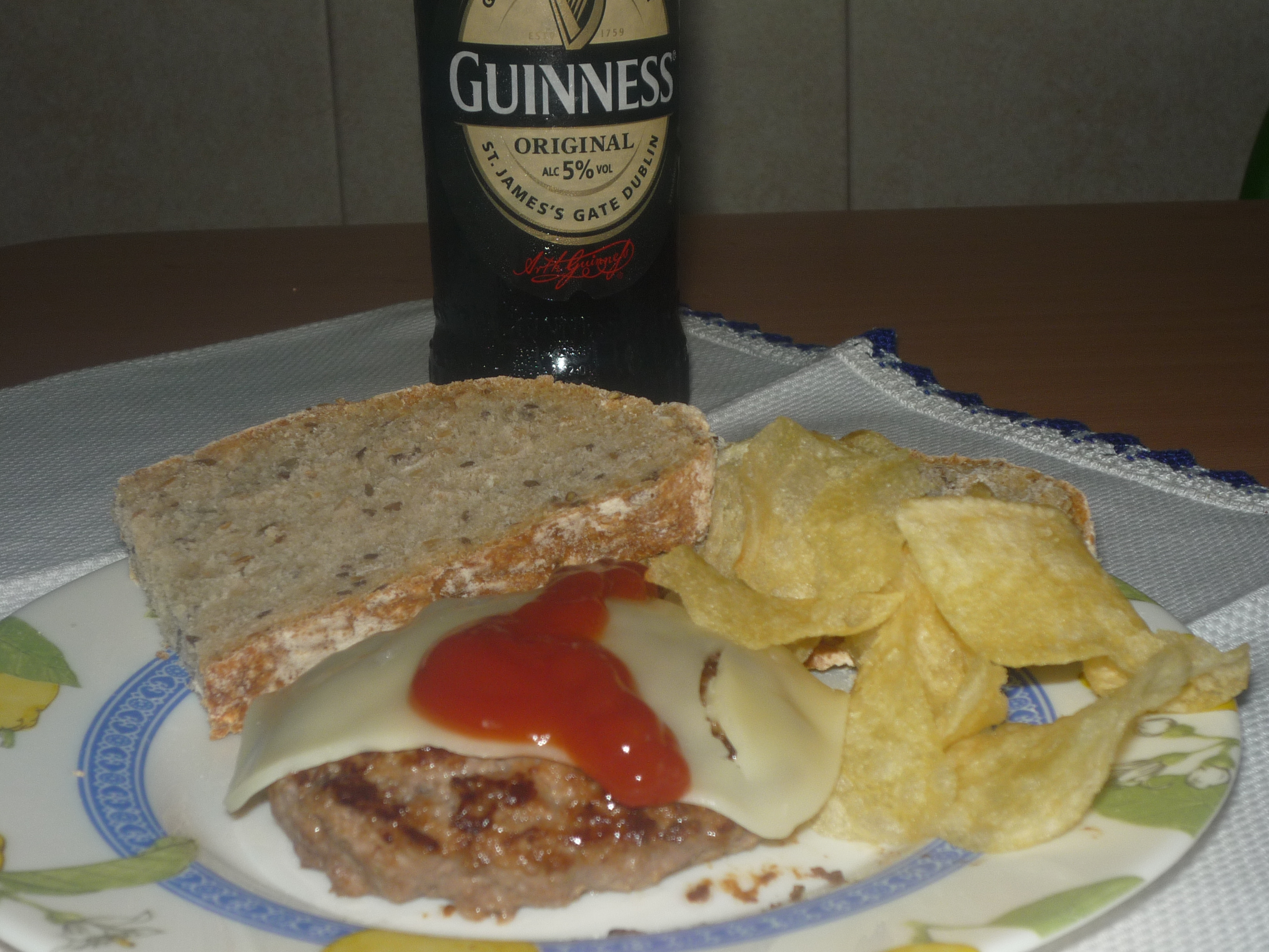 Acompanhe com uma fatia de queijo, alface, batata frita, pão caseiro e molhos a gosto.