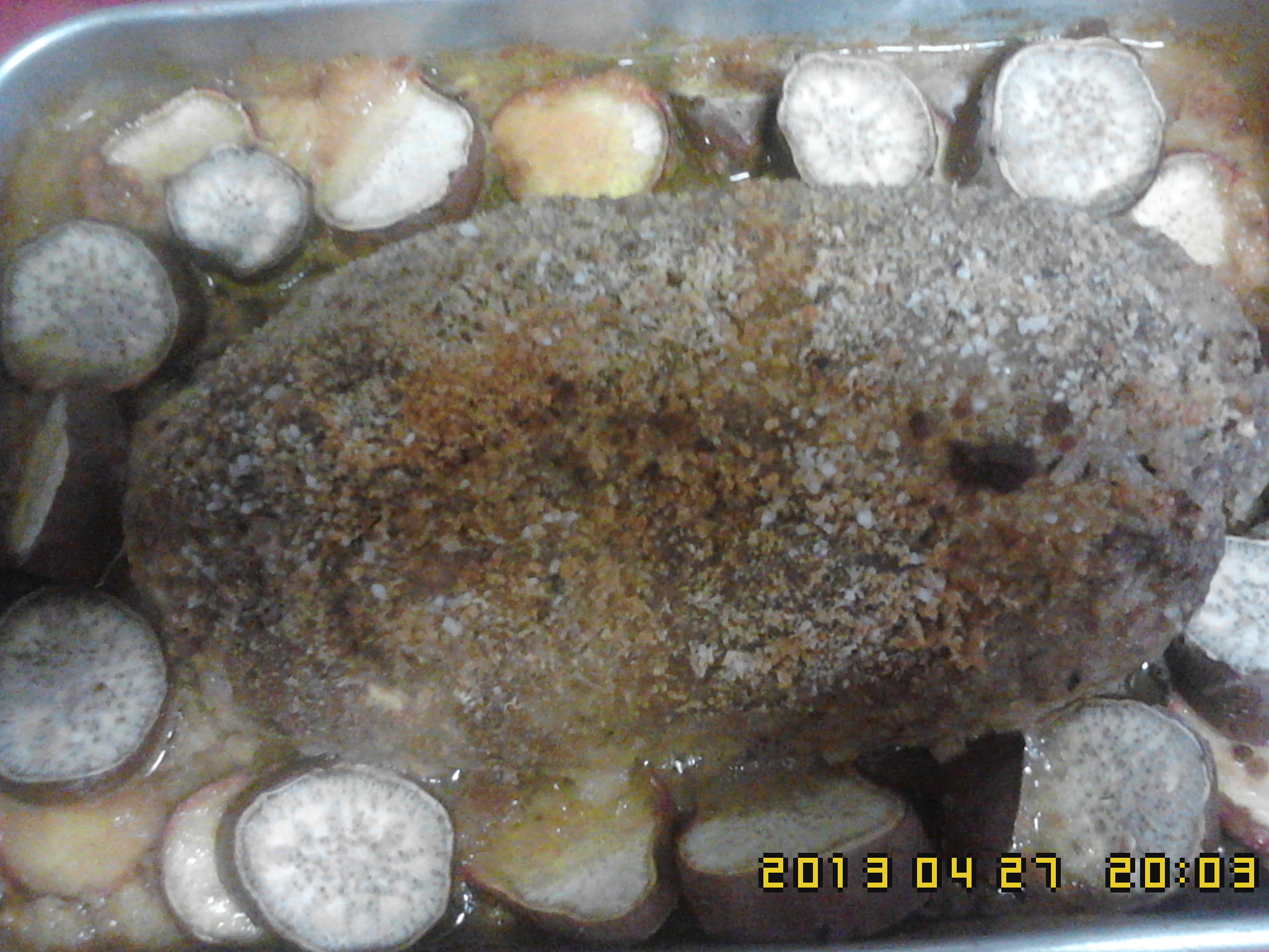 1. Pique uma cenoura,metade de uma cebola V5/5s.Reserve para um pires.Preparado,os alhos,coentros,pão.V9/2m ou até ficar mesmo bem ralado.Reserve,para um recepiente.Ponha,no copo,as carnes,sal,300g,do preparado,a cenoura e a cebola picada,os quatro ovos.V5/2m a 3m.Retire a carne,faça o rolo de carne,ponha em cima no tabuleiro.A seguir em cima do rolo,ponha o preparado.Debaixo,do rolo ponha a folha de loiro.Exprema a laranja e o limão,ponha á volta da carne,a seguir parta o caldo de carne,ponha á volta da carne.Ponha,o azeite em cima do rolo e á volta.Lave as batatas doces,bem lavadas,corte ás rodelas e ponha á volta no rolo.Ponha no forno 1h.Pode ser acompanhado,com arroz de coentros ou de cenoura.Bom apetite