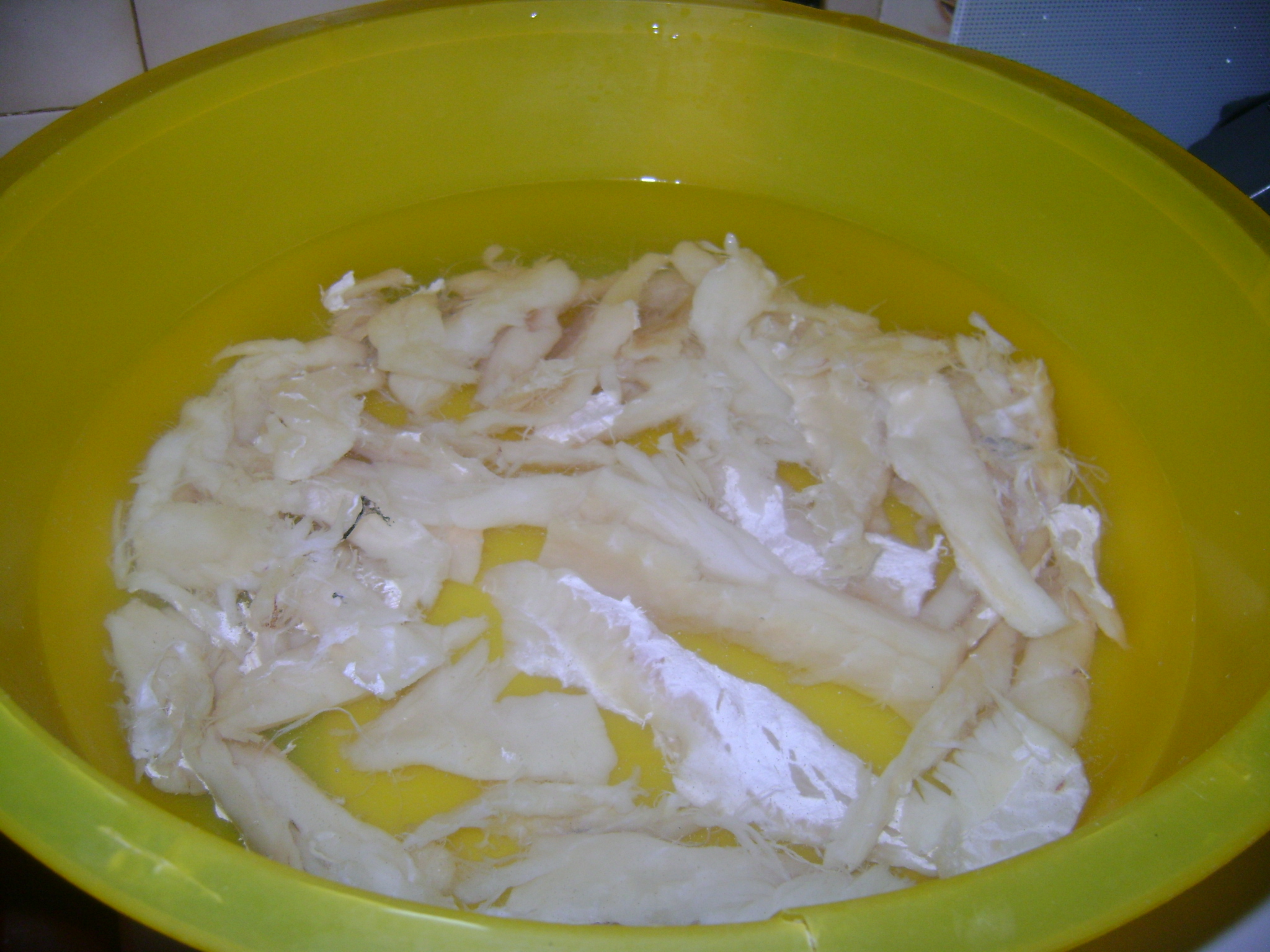 - 400 g bacalhau demolhado e desfiado comprei já lascado