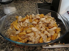 Parte- se o queijo aos poucos e espalha-se por cima.