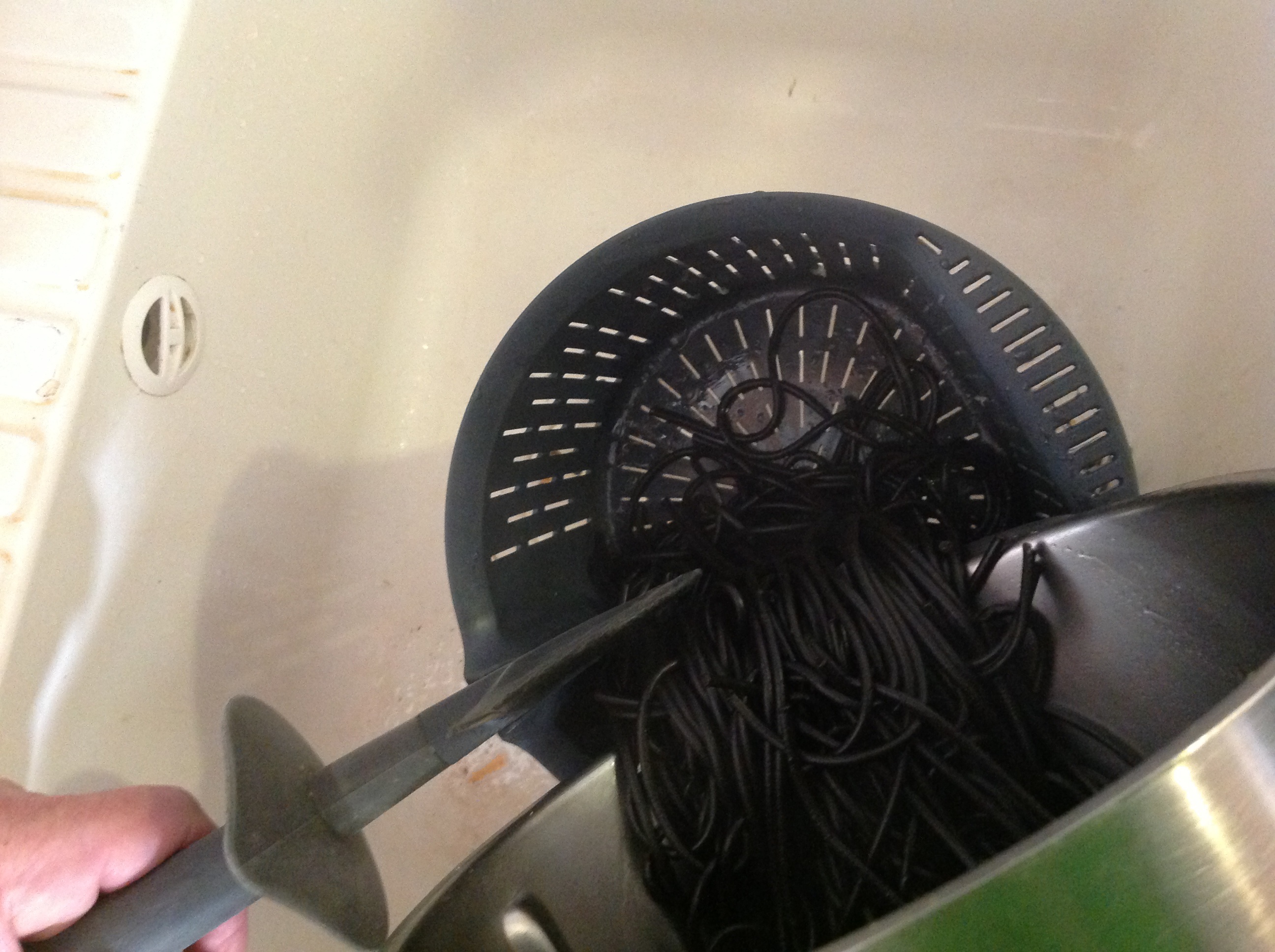 "Velocidade inversa" . Quando o espaguete baixar na totalidade tape com o copo medida.Escorra com a ajuda do cesto e reserve.