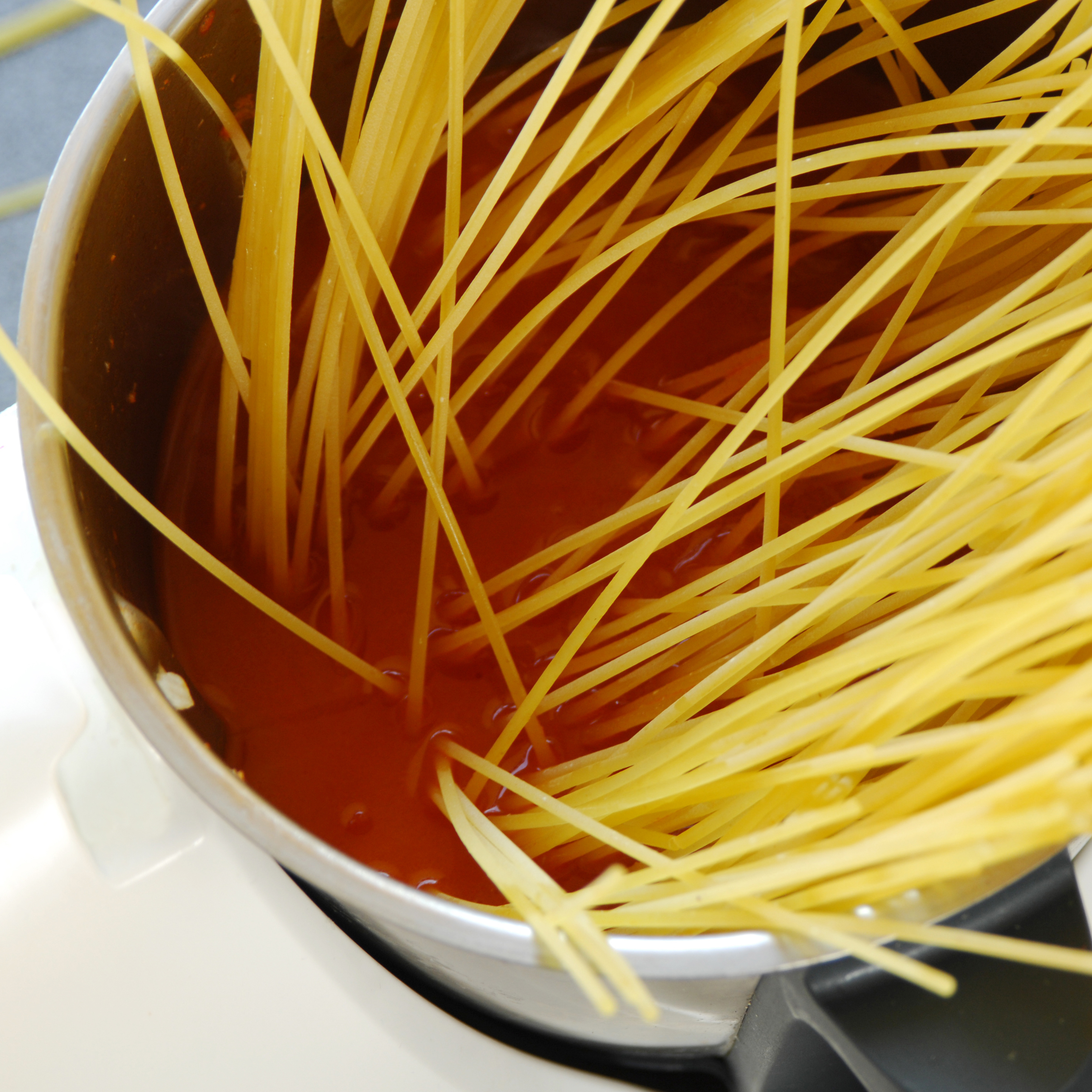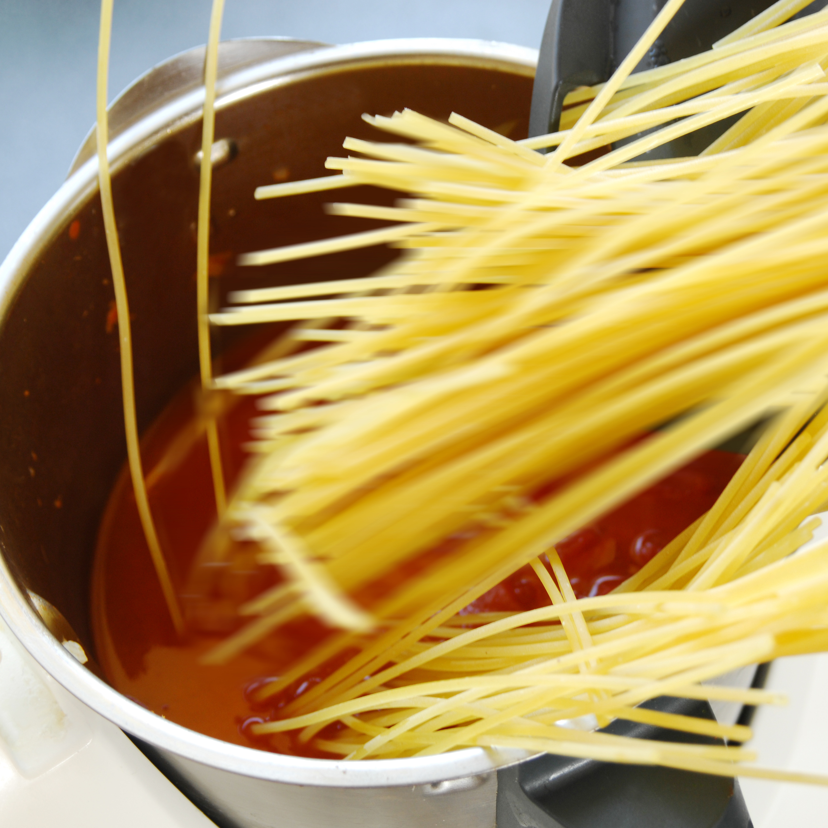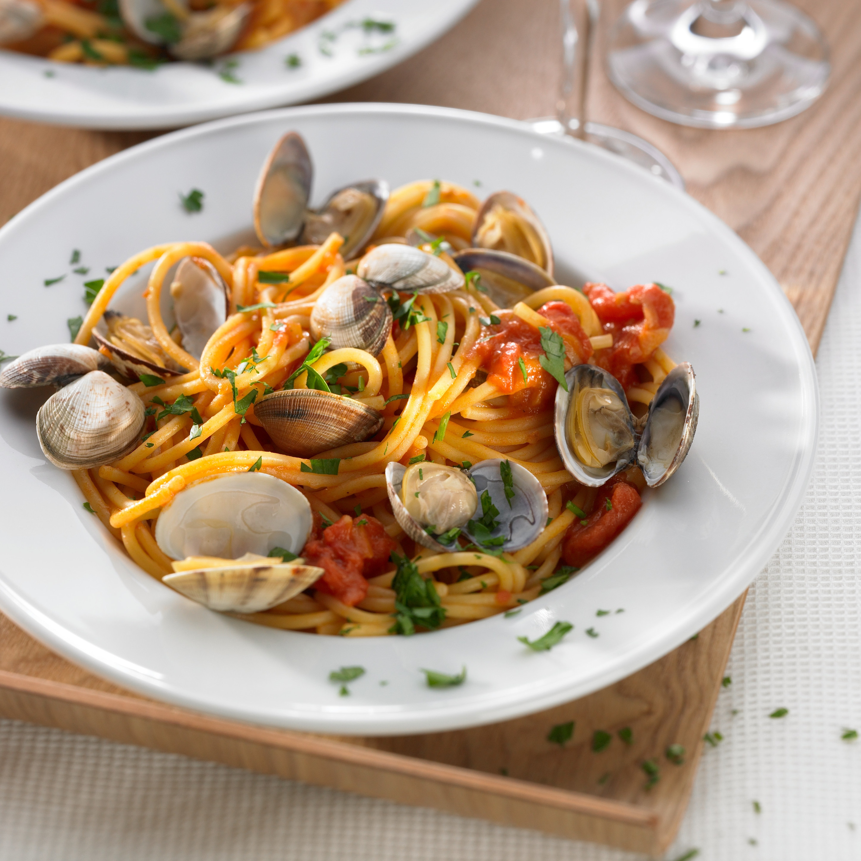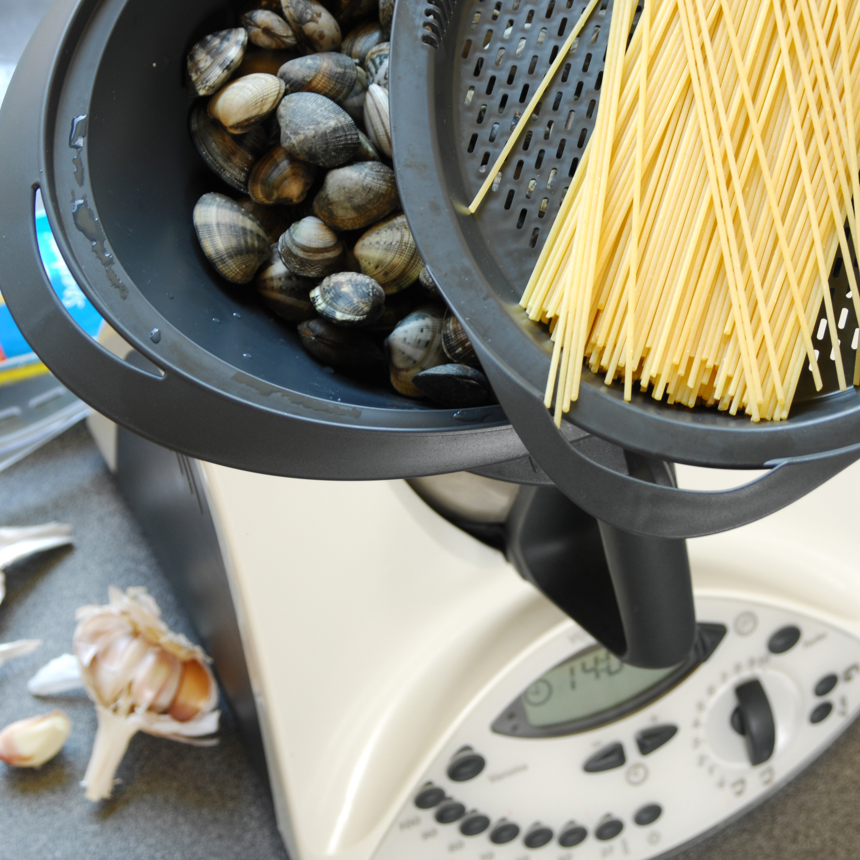 Pode substituir as amêijoas por mexilhões ou legumes cortado em pequenos pedaços. Sugestão italiana: pode cozer o esparguete sem o colocar no tabuleiro Varoma. No passo 4 introduza o esparguete verticalmente pelo bocal da tampa. Logo que este descer, pode colocar a Varoma.