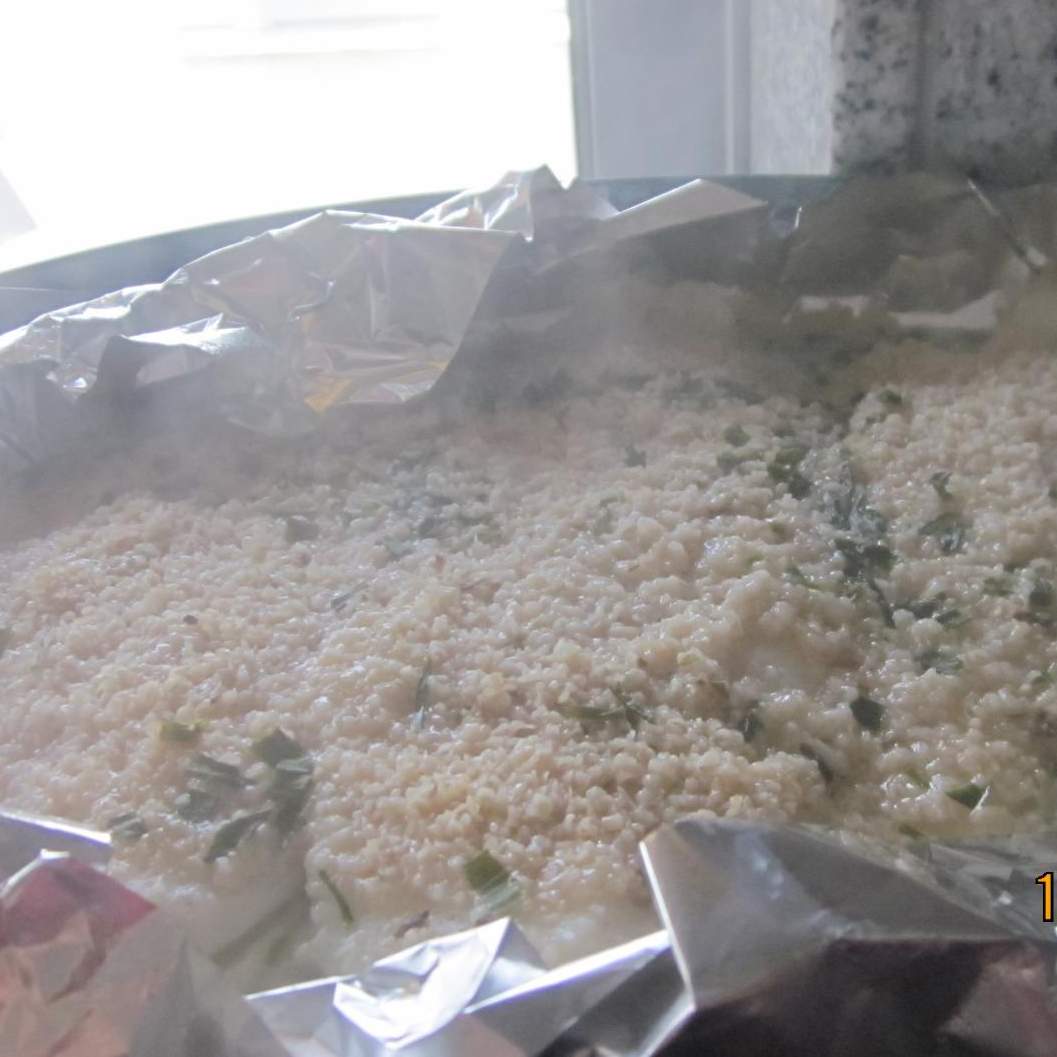 "Tampa fechada" com menos de meio de água.Coloque uma folha de papel de aluminio na varoma. Coloque sobre ela o peixe e regue com o sumo de um limão. Por cima polvilhe com salsa e cebolinho.Cubra com o farelo e pressione com a mão para que agarre ao peixe e pode voltar a polvilhar com cebolinho. Ligar a Bimby na Temp. Varoma / Vel. 1 / 25 min.Acompanhamento:Pode ser com um boa salada ou uns legumes cozidos (ou salteados). Ou mesmo, com um arroz de legumes que se pode fazer no copo enquanto o peixe cozinha.