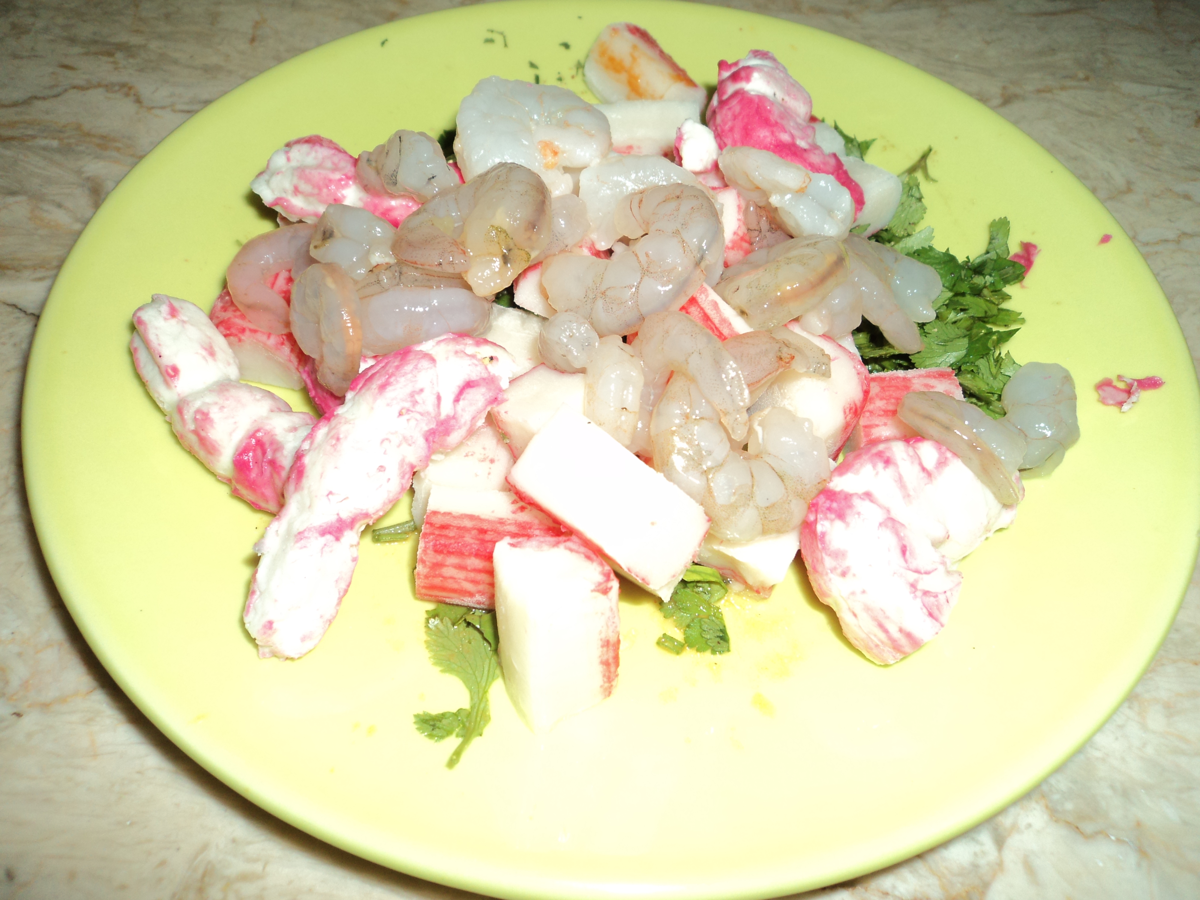 - miolo de camarão e delicias do mar a gosto (eu pus 100 gr de cada)
