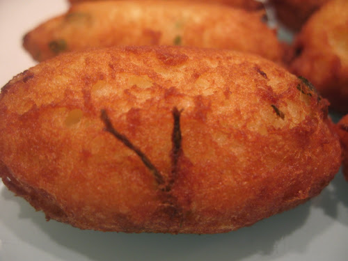 Com o auxílio de duas colheres de sopa, forme os pasteis e frite em óleo bem quente.