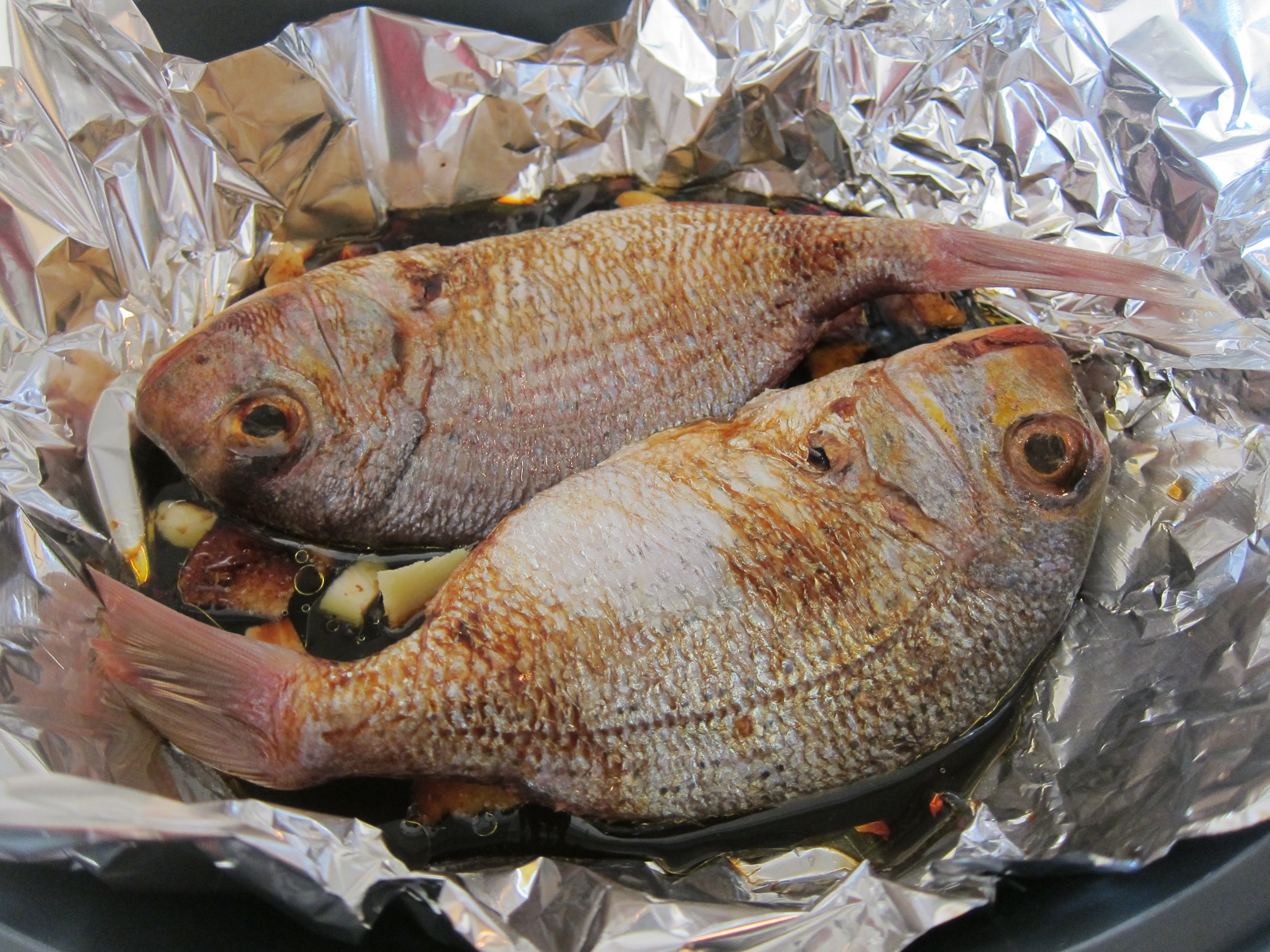 - 2 peixes pequenos inteiros e arranjados (utilizei pargo, mas fica bem com dourada ou outro peixe do mesmo tipo);