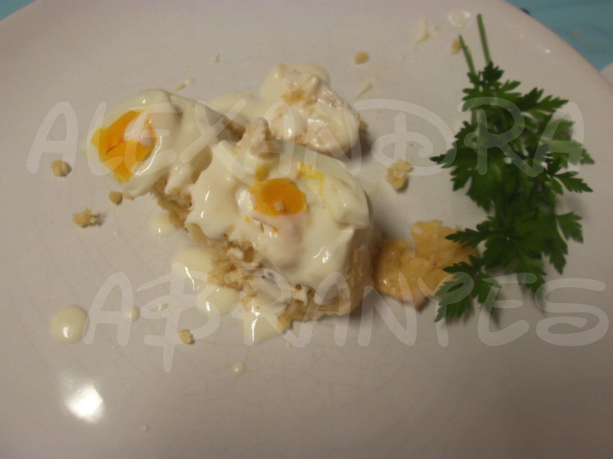 Cubra o pudim com este molho e enfeite com as rodelas de ovo reservadas.