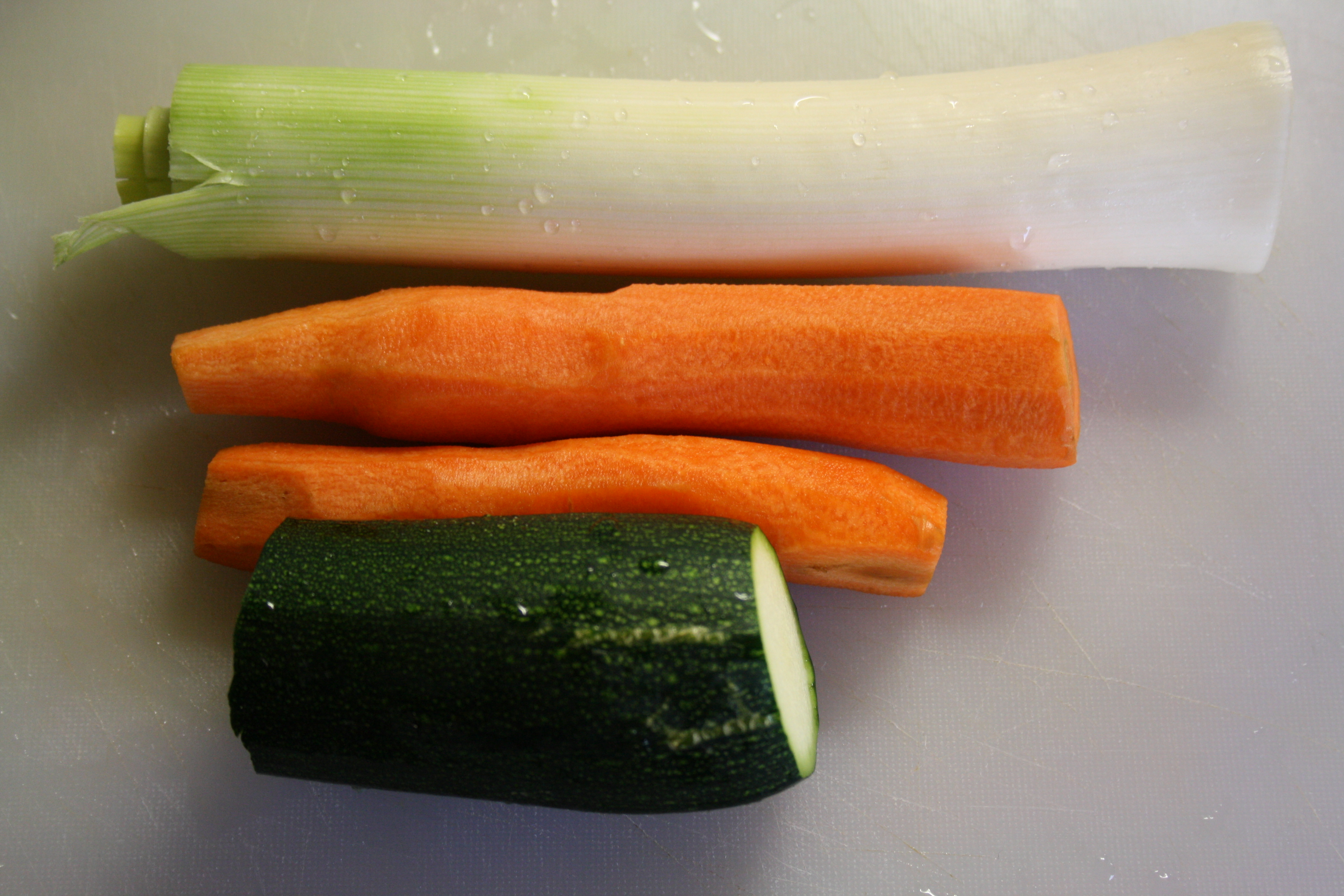 Servir dentro dos papelotes. Os legumes servem como acompanhamento.
