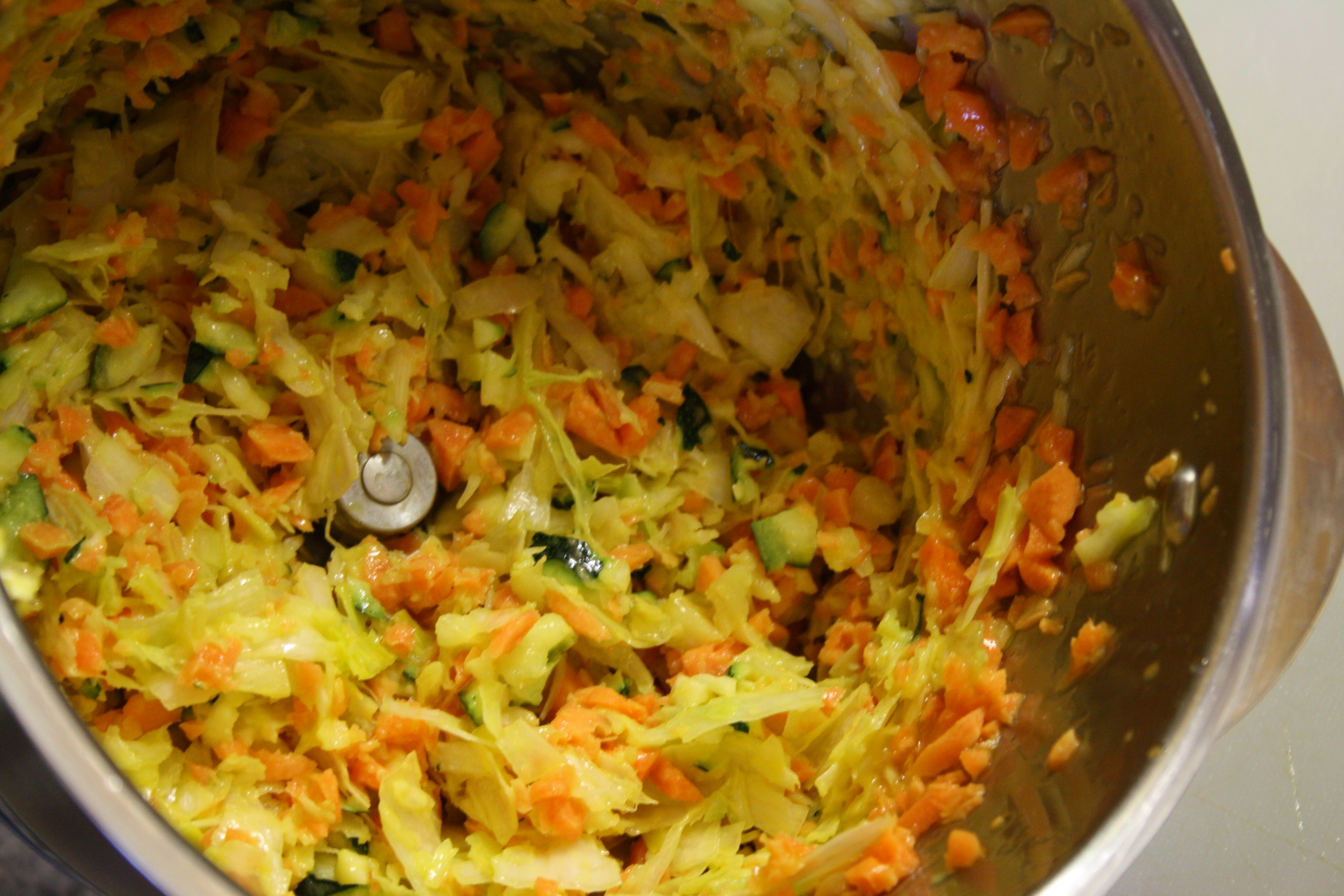 Juntar o azeite, baixar o que fica agarrado às paredes do copo e refogar 3min/Var.