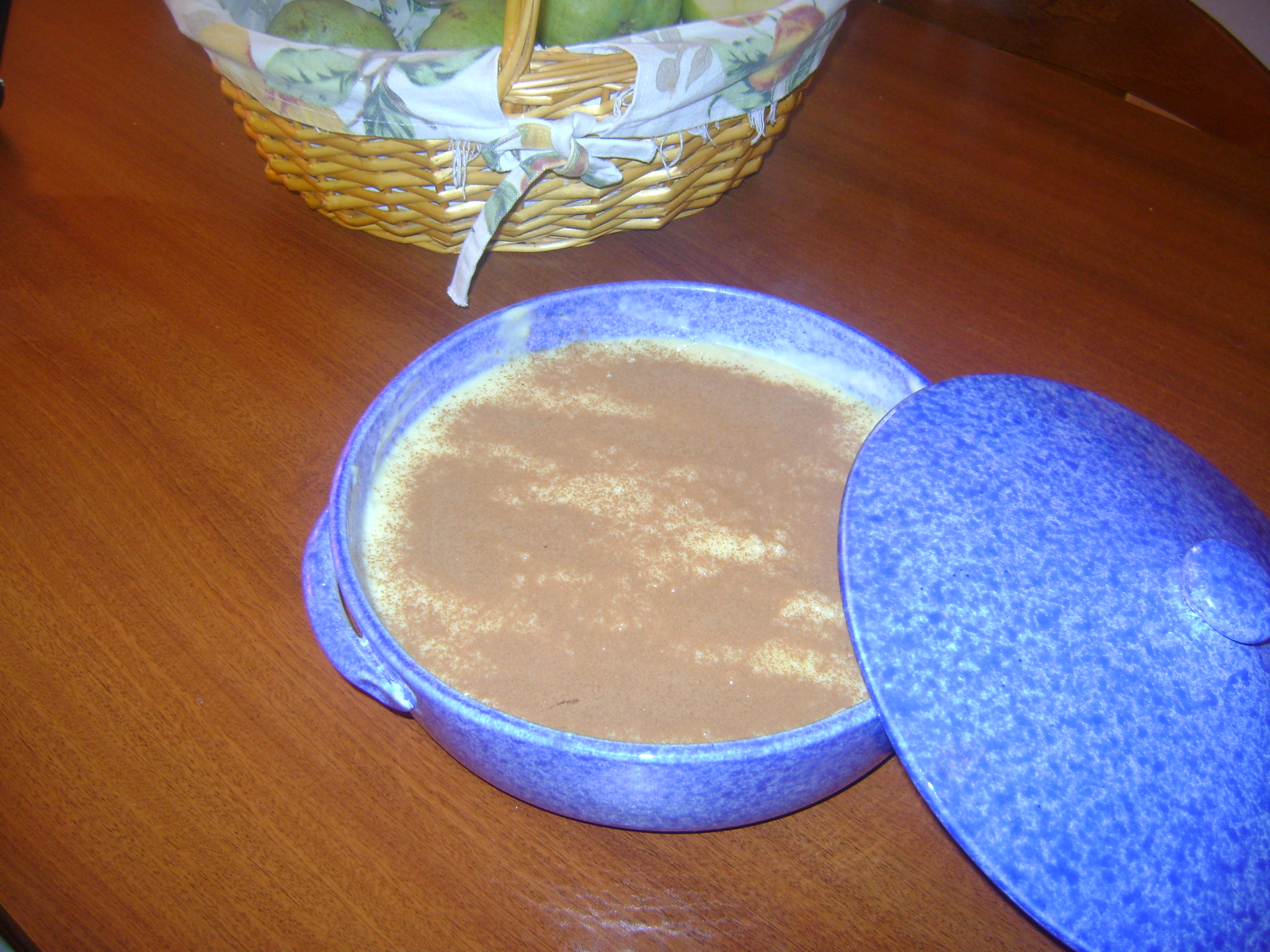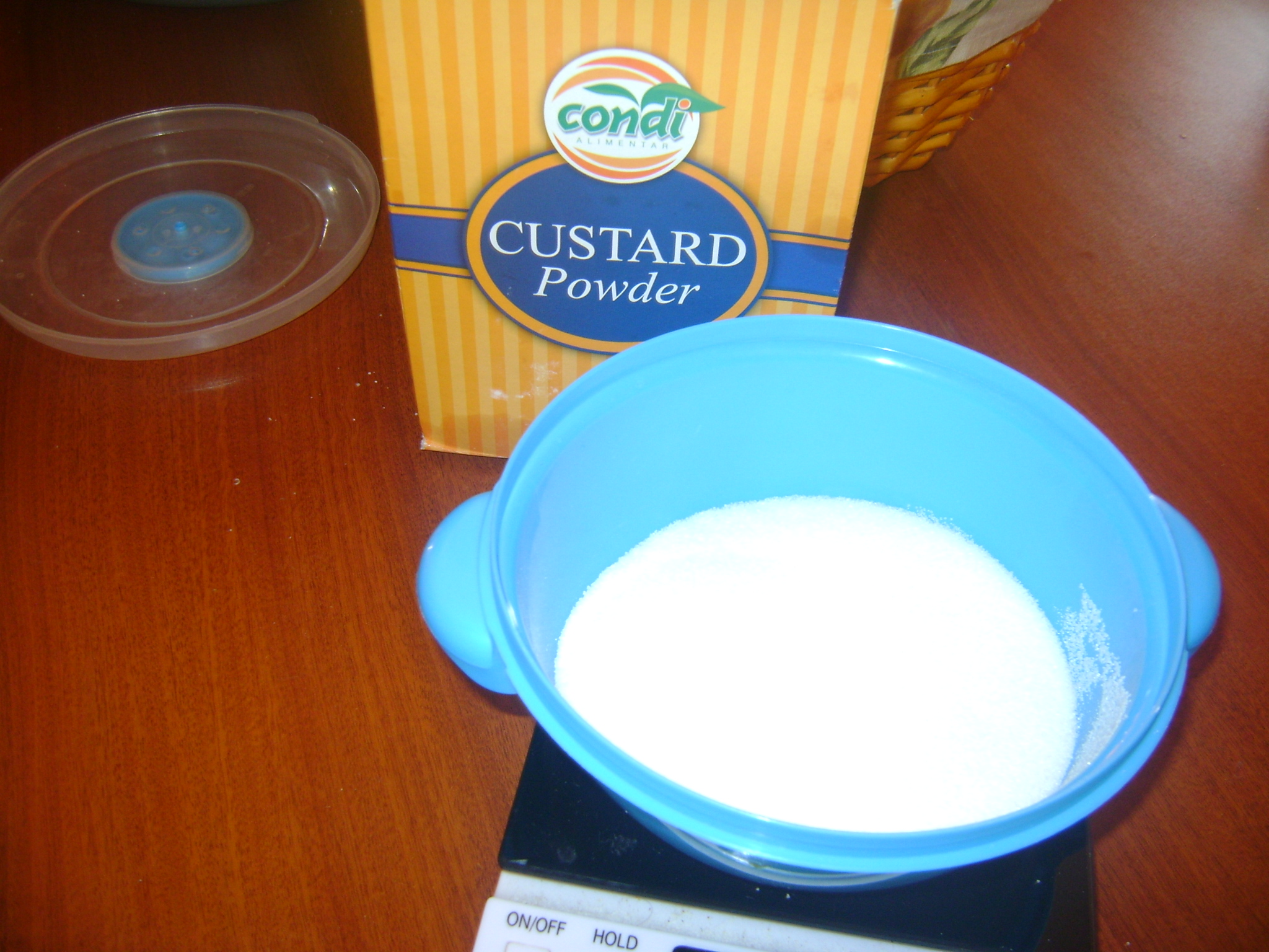 - 4 colheres (de sopa rasas) de Farinha Custard não uso ovos no arroz doçe!fazia com pudim e agora comecei a usar a farinha Custard.