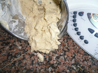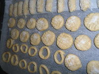 Será que margarina deve ser a temperatura ambiente? Seja como for, lá conseguir improvisar uns montinhos de massa que depois de cozidos ficaram bons