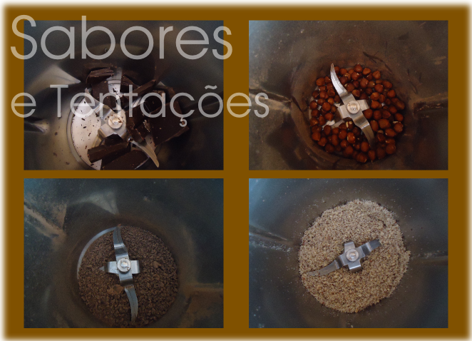 Coloque o chocolate no copo, aos bocados, e dê-lhe uns golpes de turbo, depois pique 8seg/vel 9. Facilita quando for a derreter, mas se não quiser não necessita de picar o chocolate.