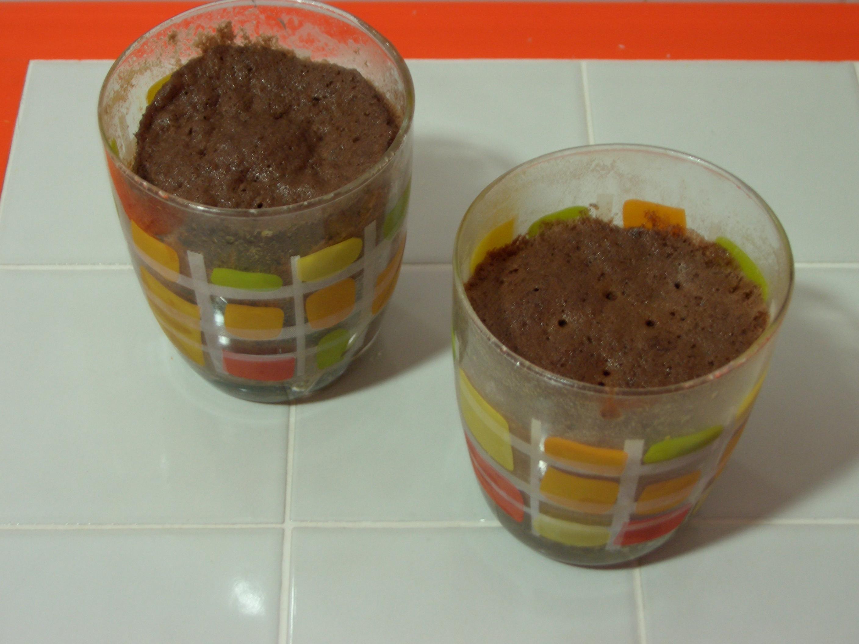 Coloque a massa em dois copos ou canecas de paredes grossas e resistentes ao calor, untados com manteiga e farinha.