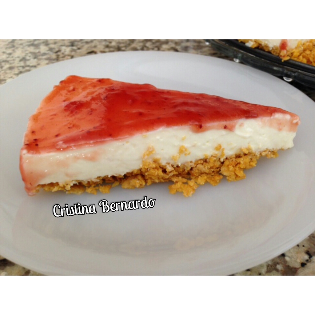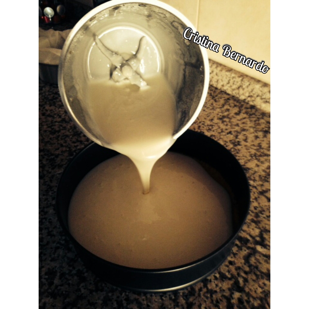 8. Deitar o preparado sobre a base e levar ao frigorífico. Fiz no dia anterior à noite para servir ao almoço do dia seguinte.