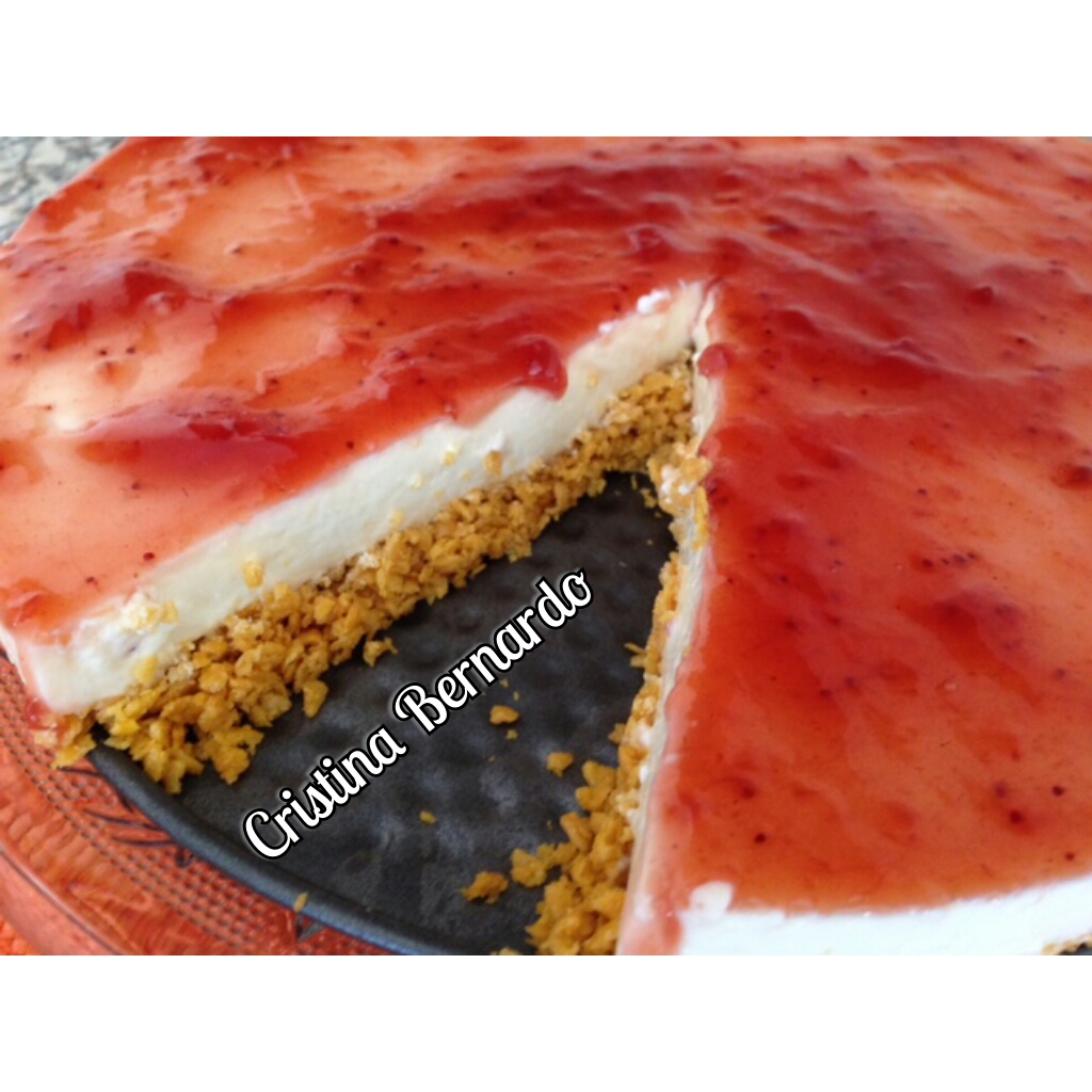 9. Antes de desenformar, decorar com a compota de morango, bastam cerca de 2 colheres de sopa.