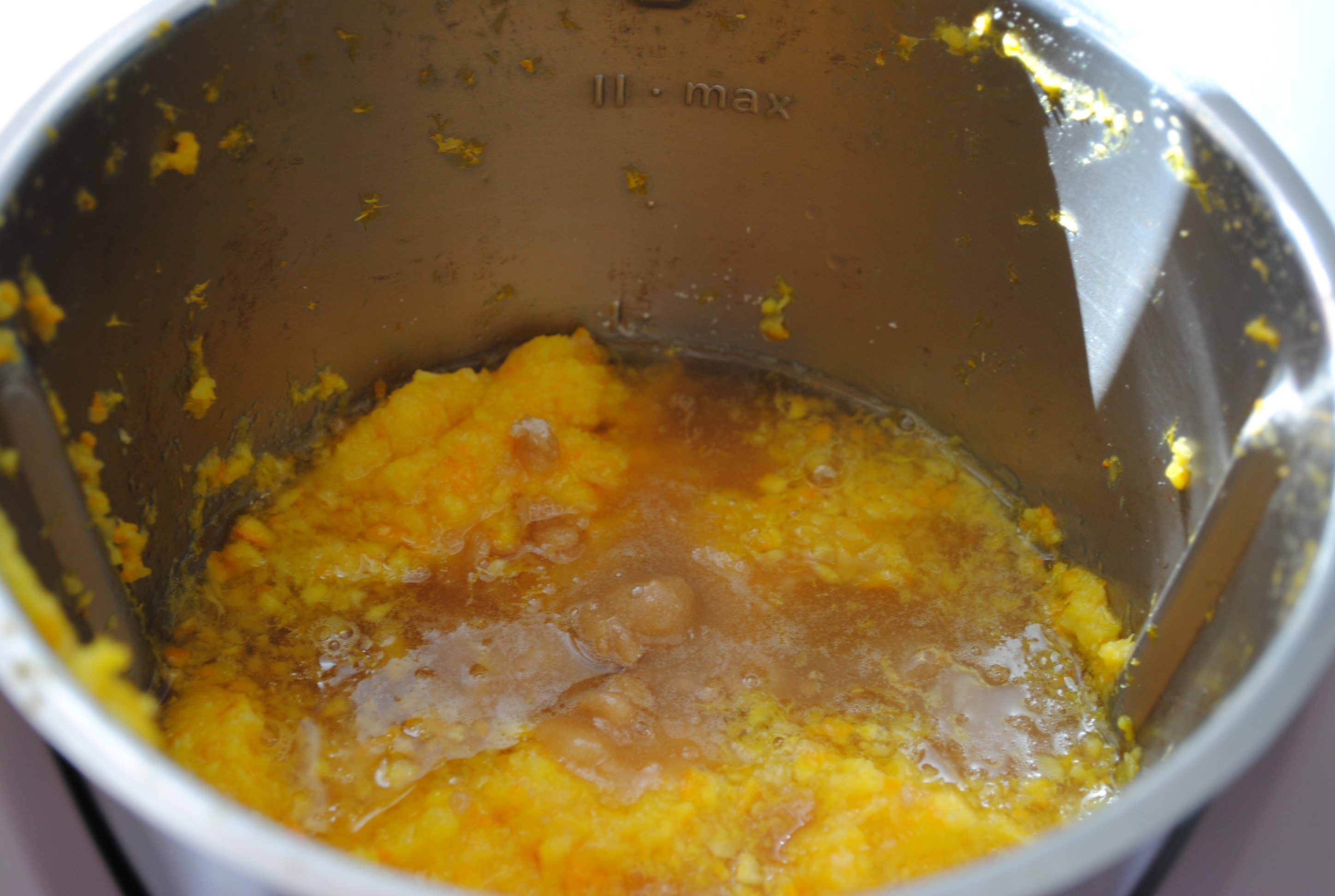 A preparação estava toda na receita, em todo o caso fiz algumas alterações de modo a que se torna-se mais perceptível. Fiz esta compota para aproveitar as cascas e a polpa que ficaram no copo depois de fazer o sumo de laranja.