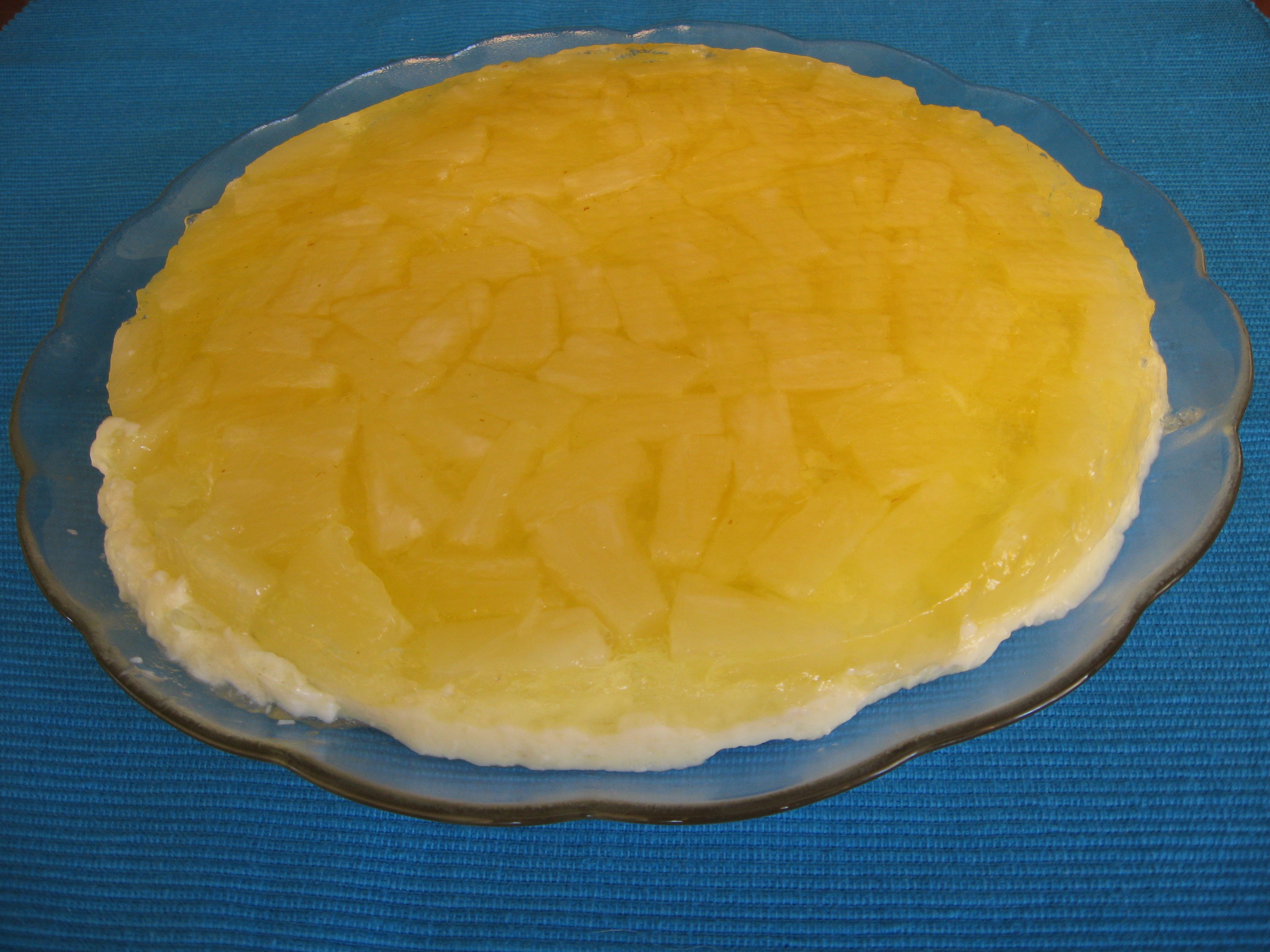 Retirar a forma do congelador (depois de solidificada a gelatina) e deitar por cima o preparado anterior