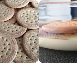 Coloque este creme numa taça e, por cima, camadas de bolachas molhadas em café morno. Deixe arrefecer.Entretanto, com cuidado envolva as claras em castelo nas natas batidas