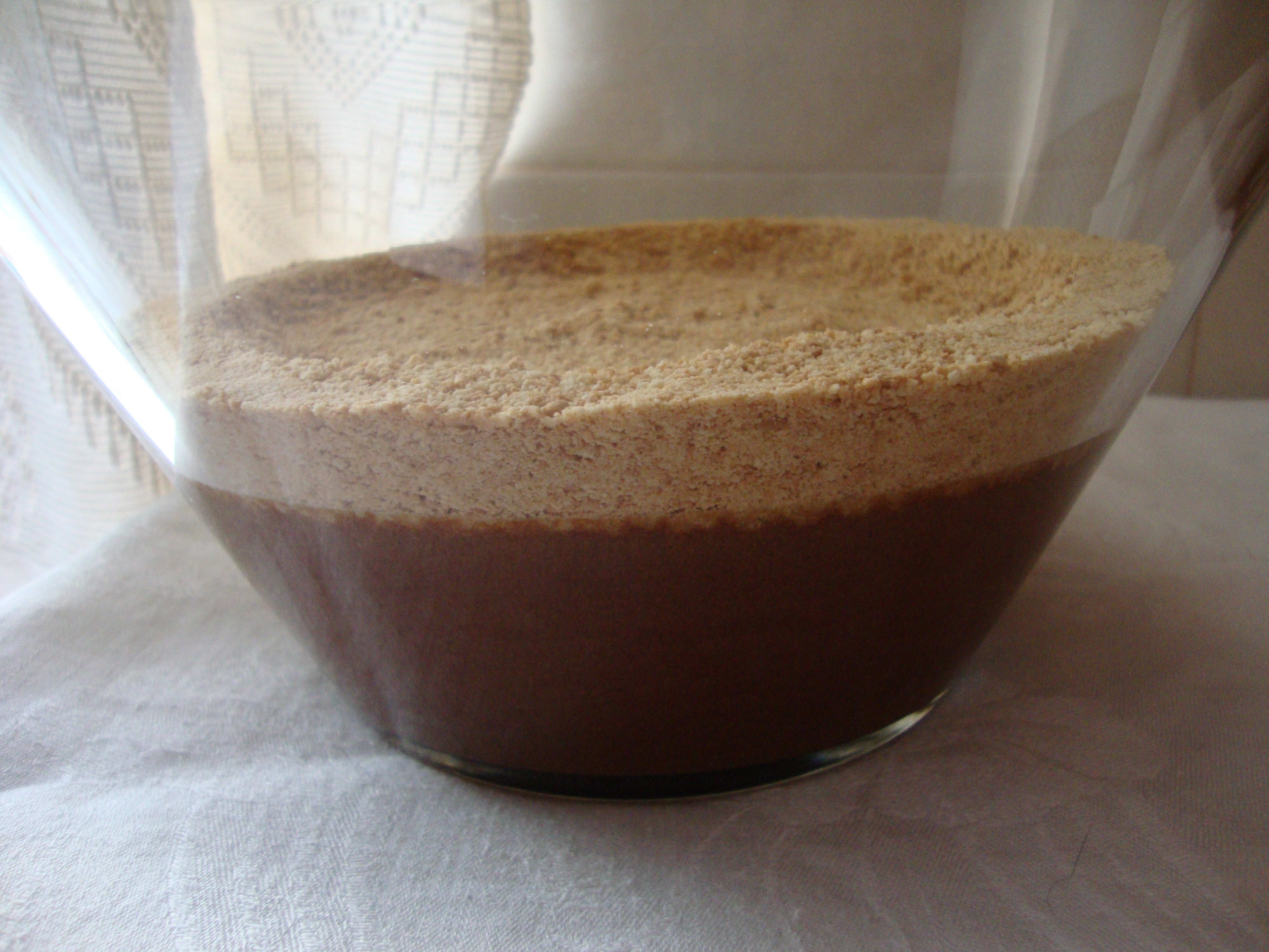 vidro, sem lavar o copo faça a 2ª mousse da mesma maneira que anterior - Deite por cima da 1ª mousse a bolacha ralada e então com cuidado, nas bordas e depois espalhando para o meio a 2ª mousse.