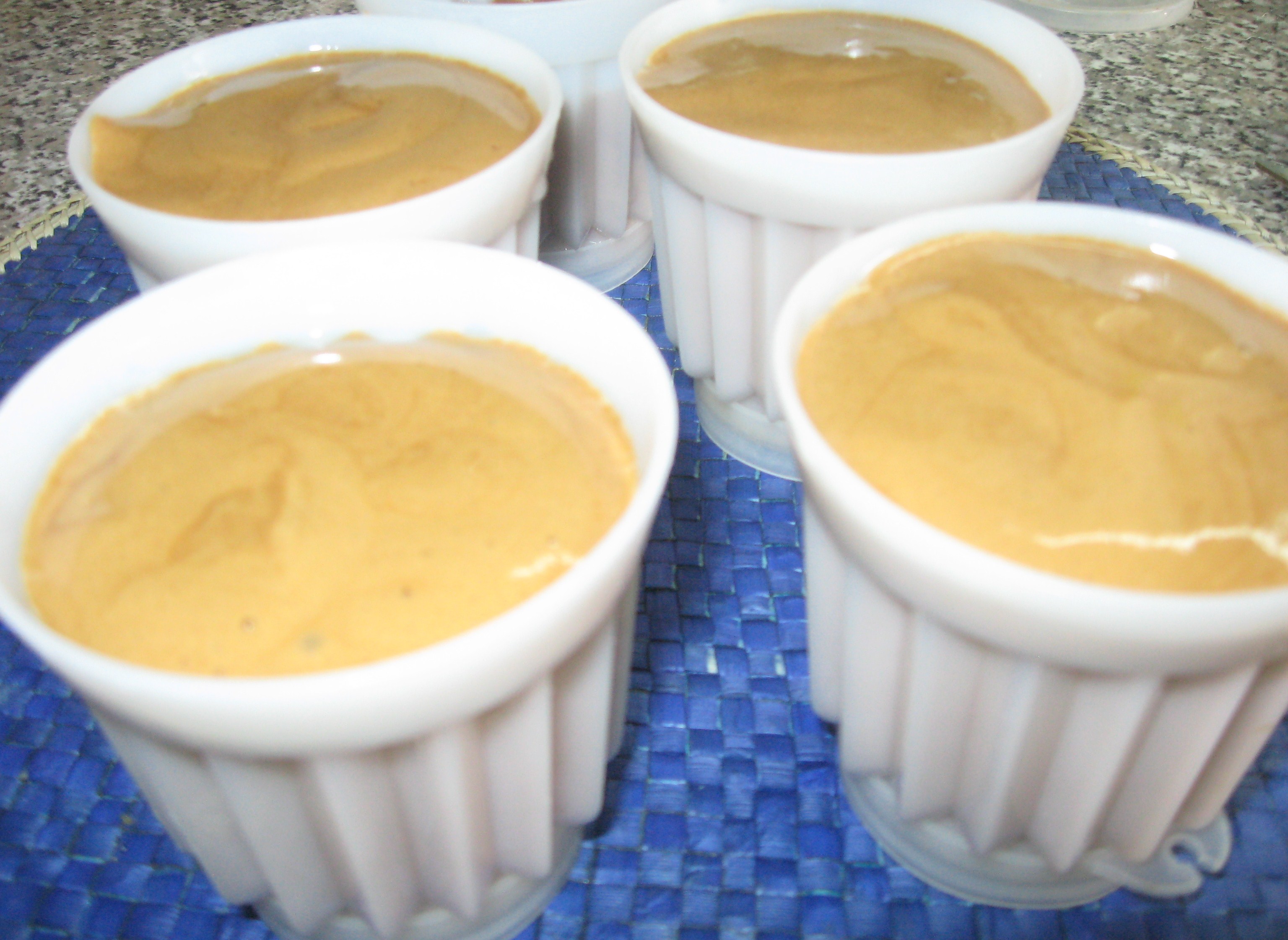 (Fiz com 2 ovos, 80 gr de açúcar mascavado, 1 dcl de leite, 20 gr de Tofina e 2 folhas de gelatina