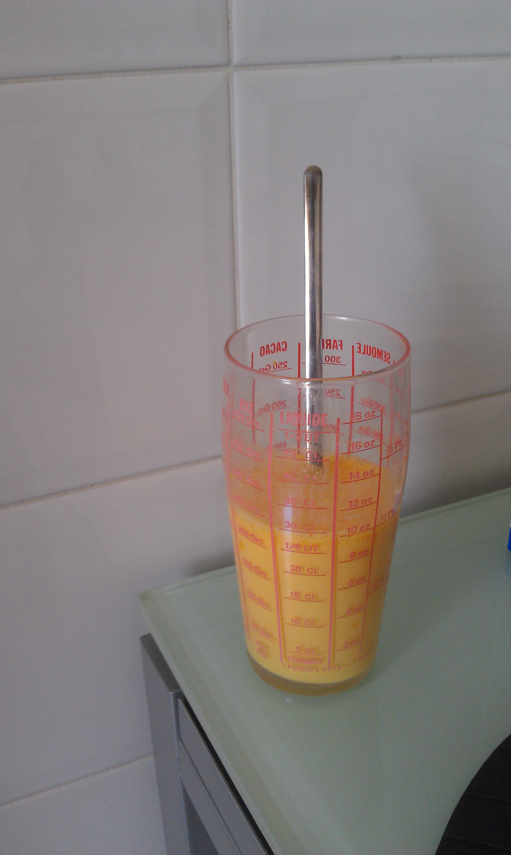 1. Com a ajuda de um copo graduado, separar 300 ml de leite do 1 litro necessário para o pudim e reserve.