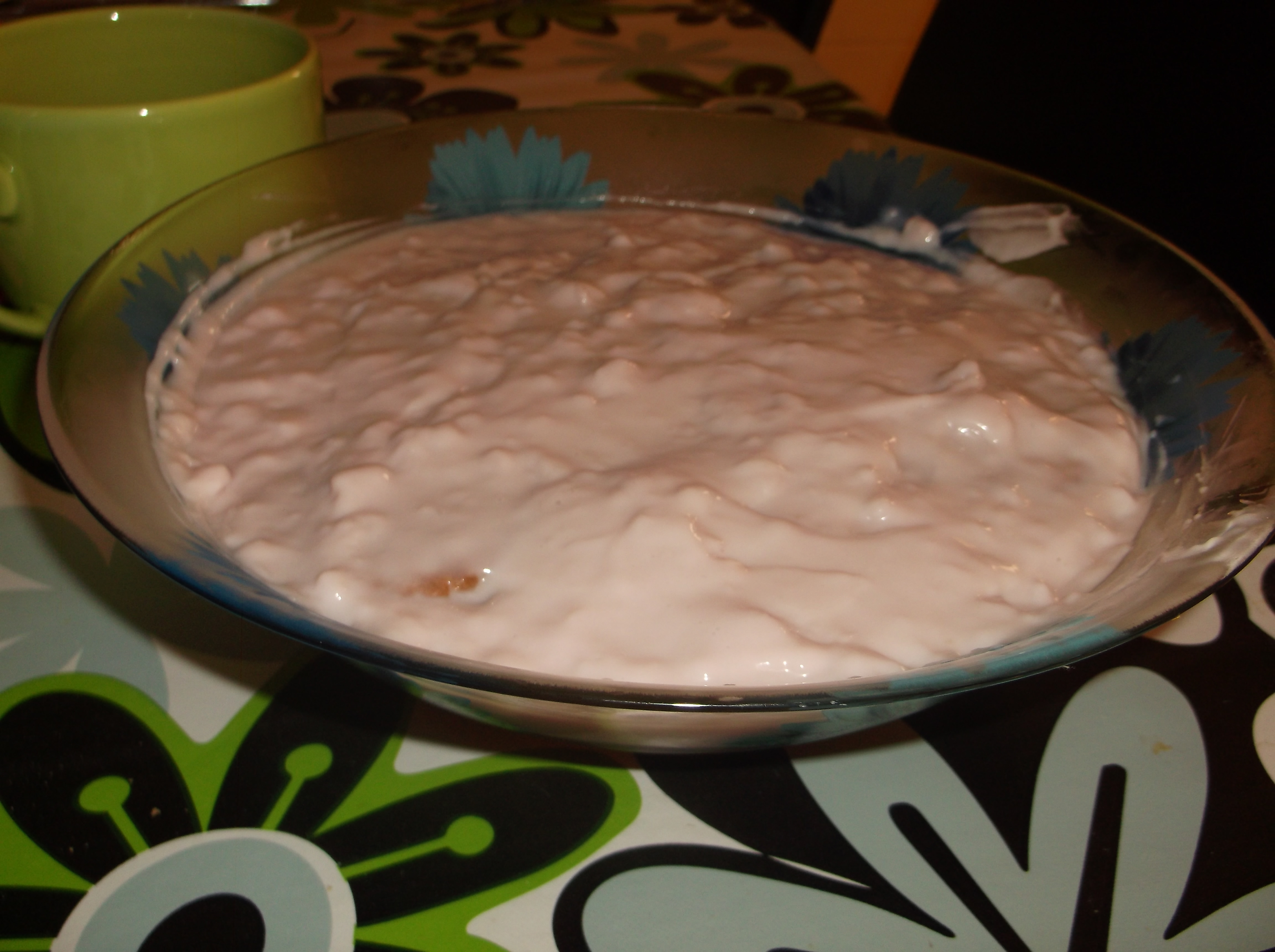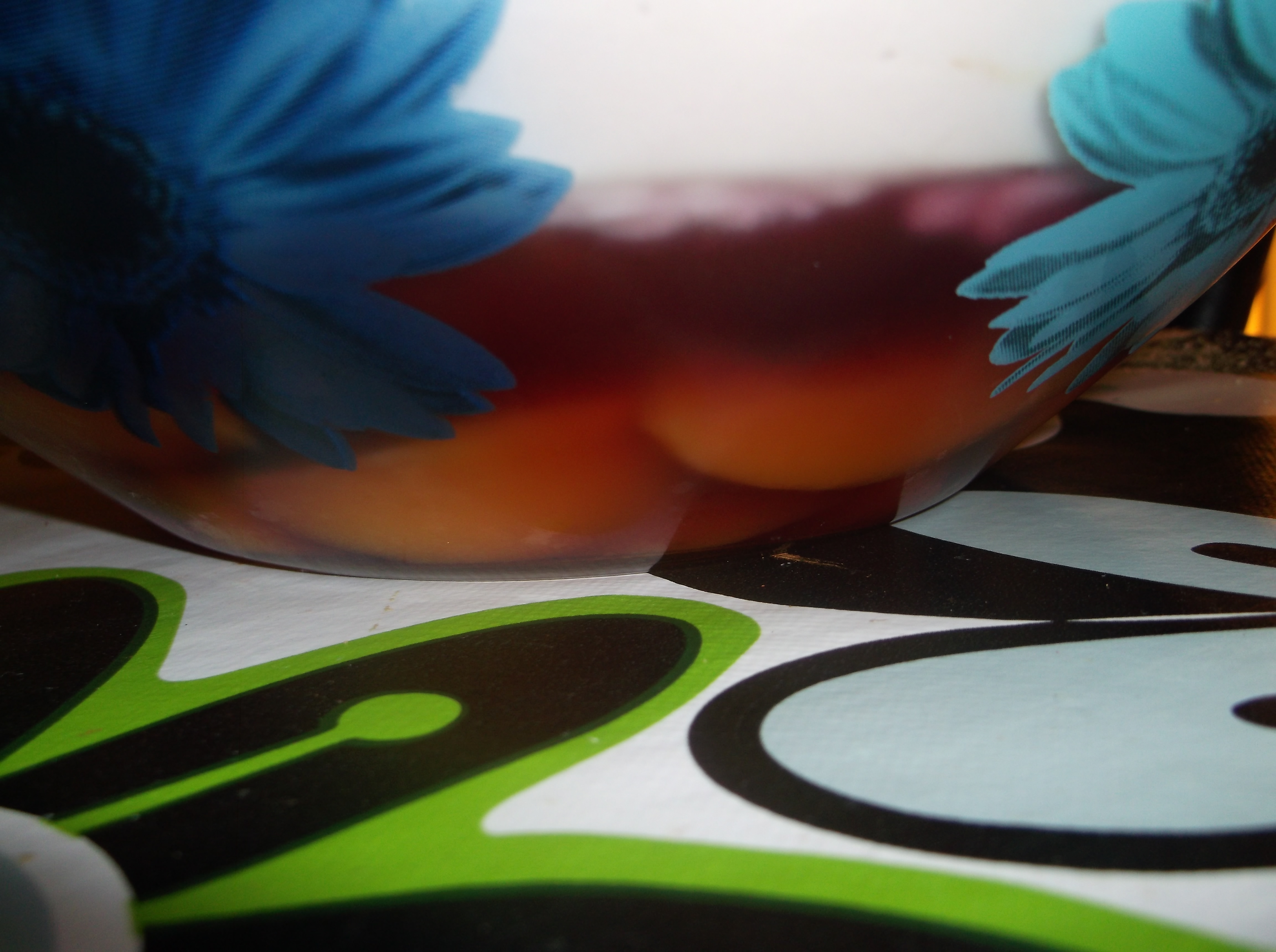 "Colher de pau" / 100º 250 gr de agua, junte a gelatina de morango e adicione mais 250 gr de agua fria e mecha. cerca de 30 seg ( pode colocar nnuma forma sem abertura para comer a fatia ou numa tigela como eu fix para comer a colher )3º Coloque a gelatina numa tigela ou forma, com os pessegos cortados a fatia ( reserve um para decoracao) leve ao frio ate ficar minimamente solido. +/- 2 horas
