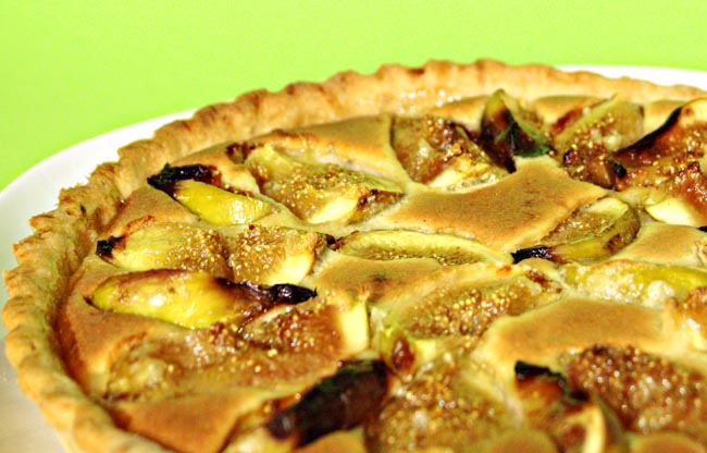 Retire a base do forno, espalhe a mistura de amêndoa e depois distribua os figos por cima.