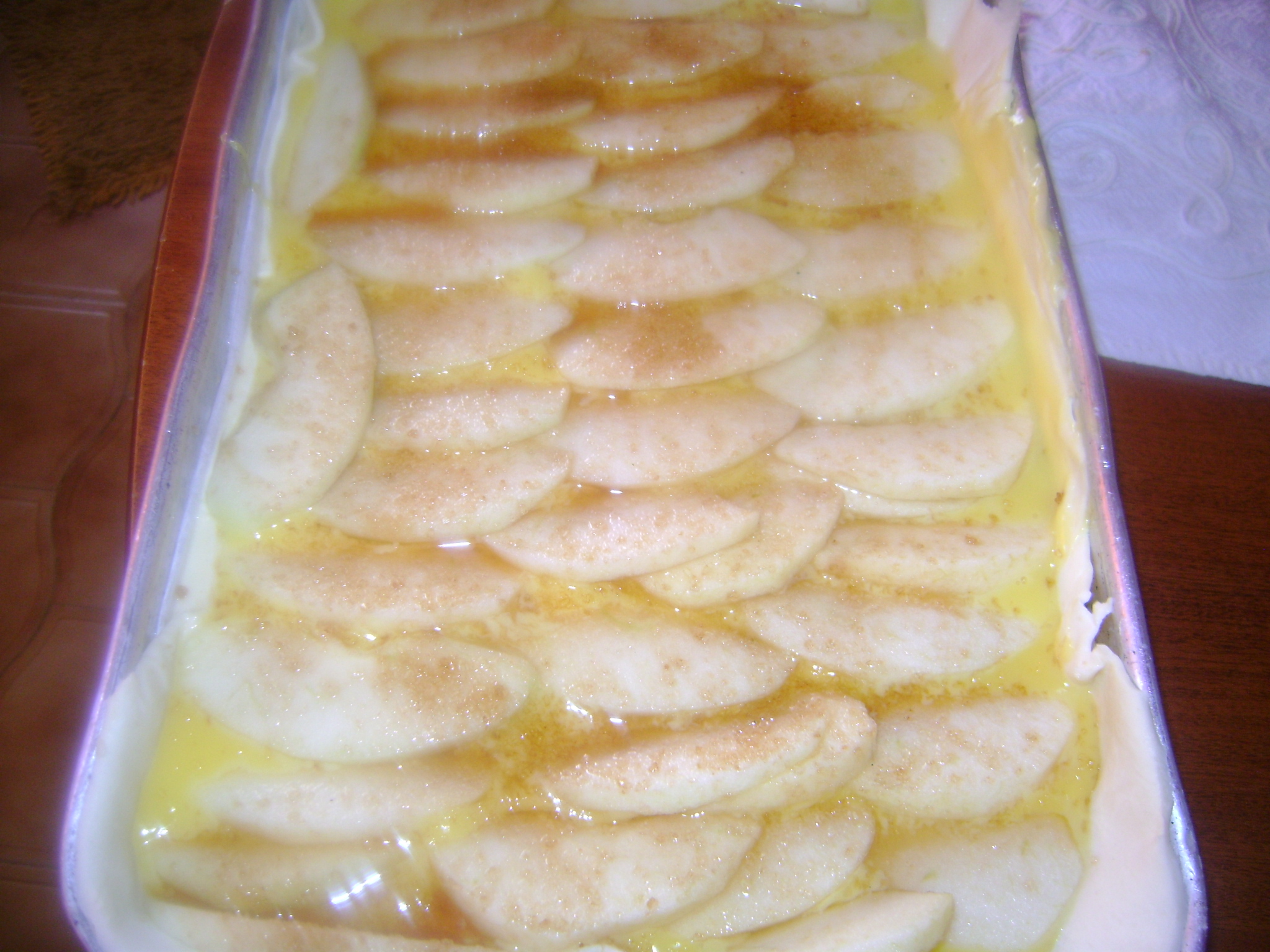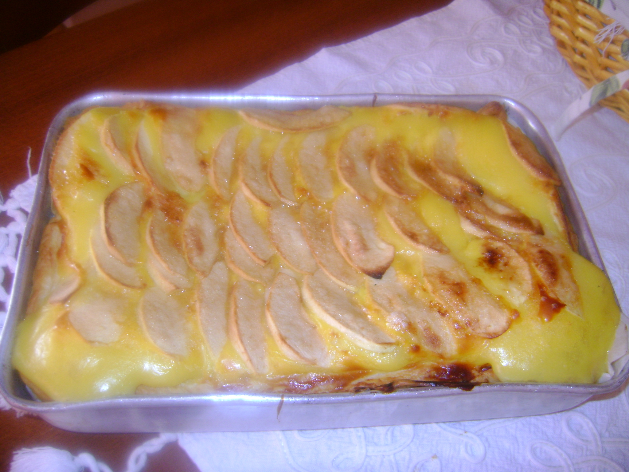 coloca a maça por cima do creme e polvilha com o açucar mascavado