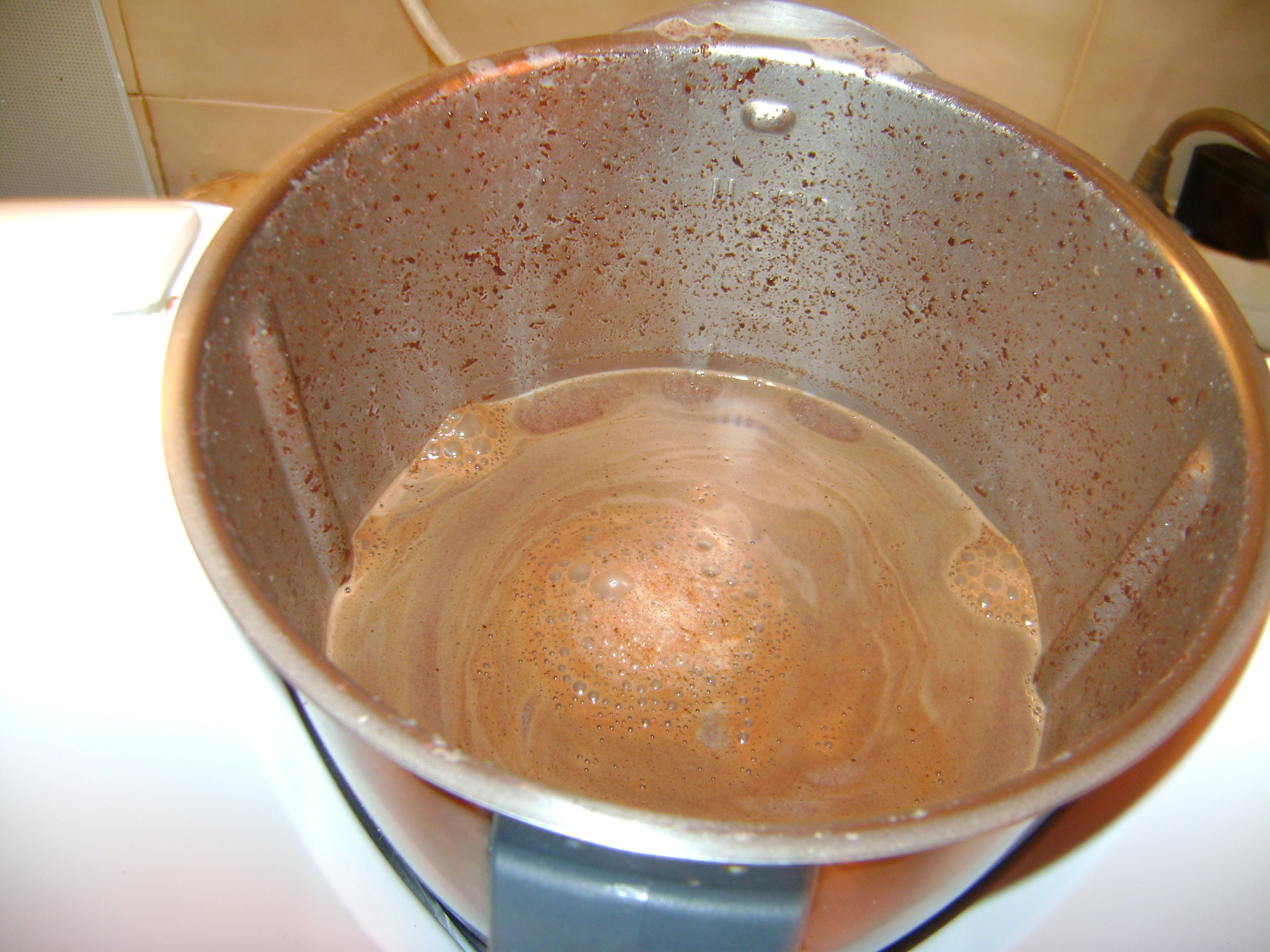 Adiciona-se o chocolate em barra e programa-se 5 Min., Temp. 90º, Vel. 2.