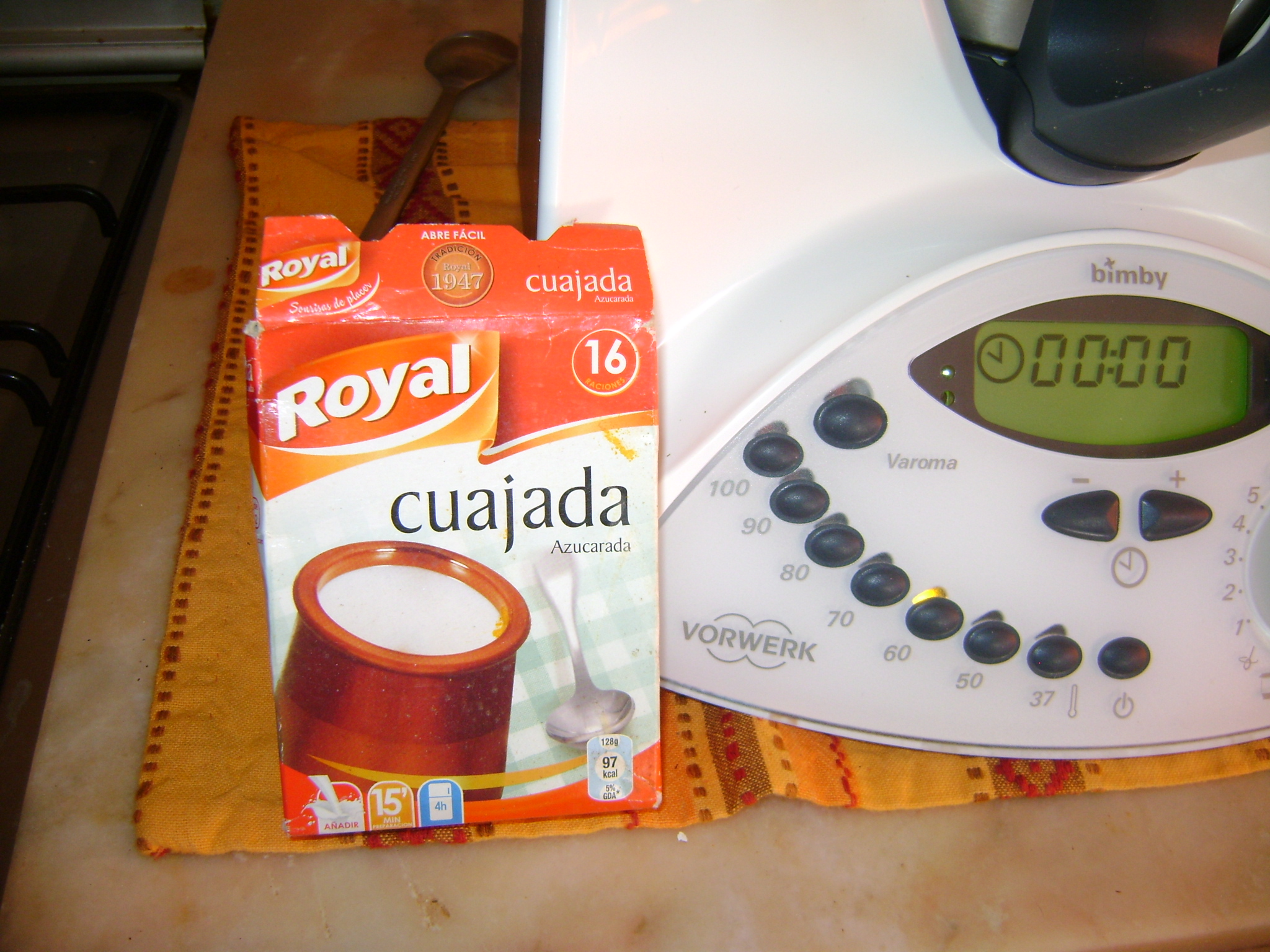 No copo da Bimby coloca-se o leite, as natas, o açúcar e o conteúdo da saqueta de cuajada.