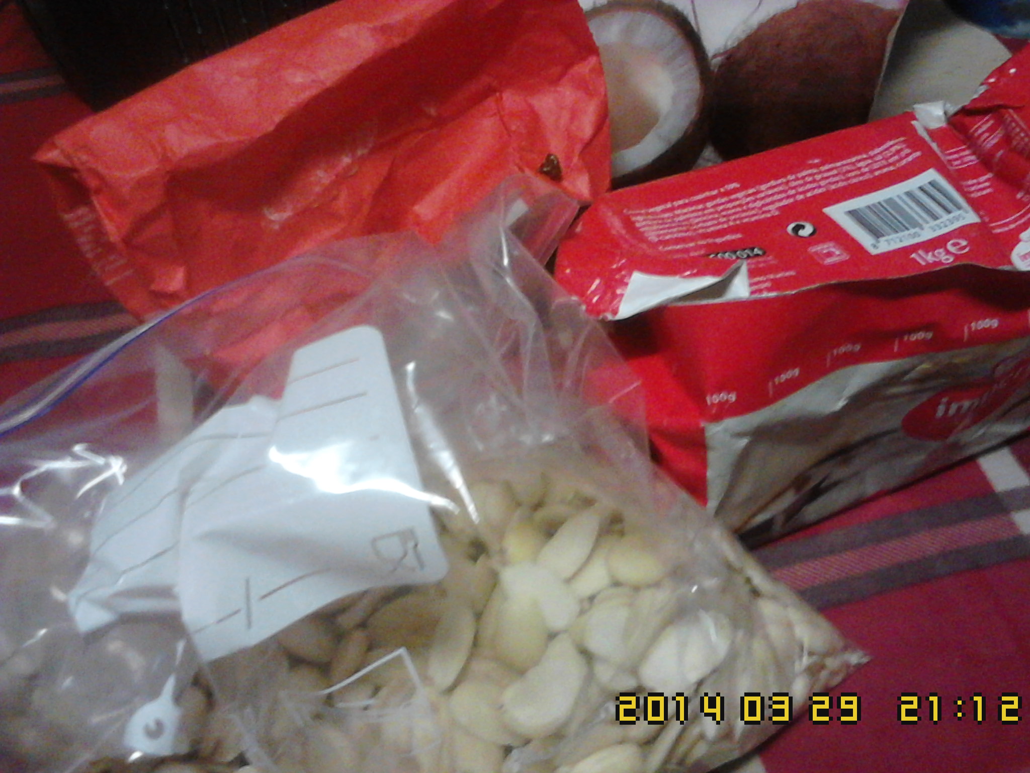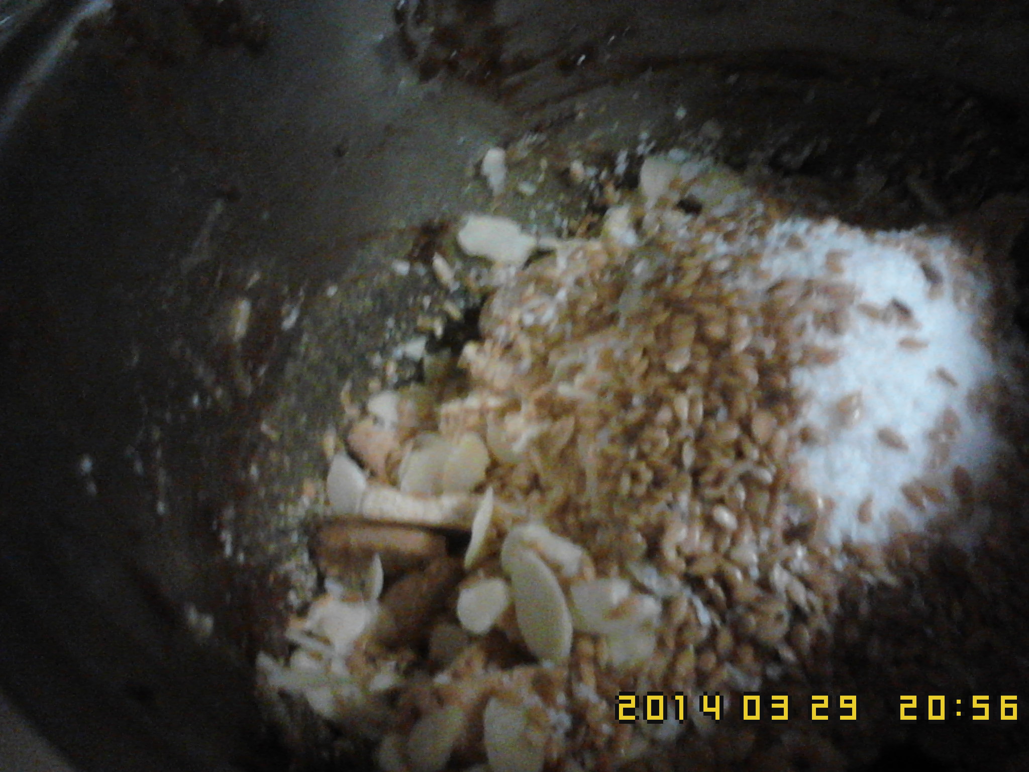 3)Adicione as bolachas,côuco,amêndoas partidas,sementes de linhaça.20s-V2 a V3.