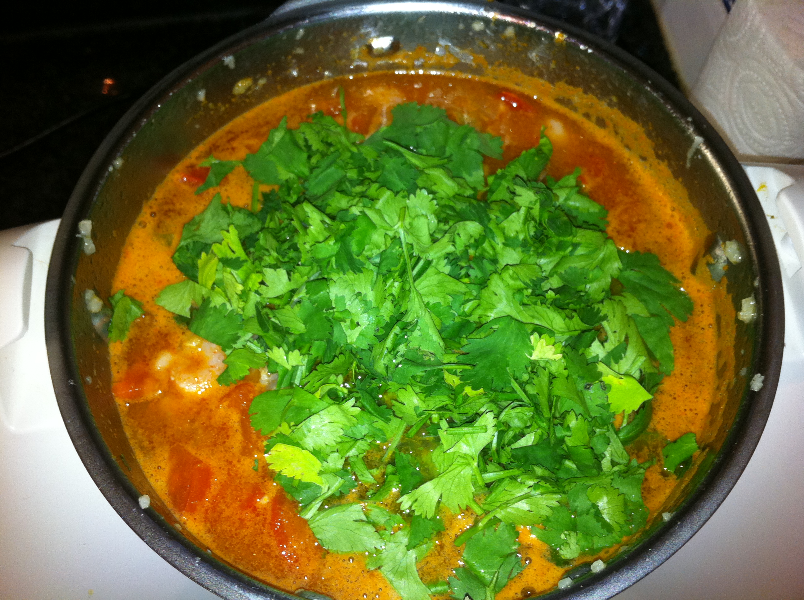 "Velocidade inversa" Temp 100.Juntar o peixe, os camarões descascados e os coentros e deixar cozer por mais 5 Minutos Vel