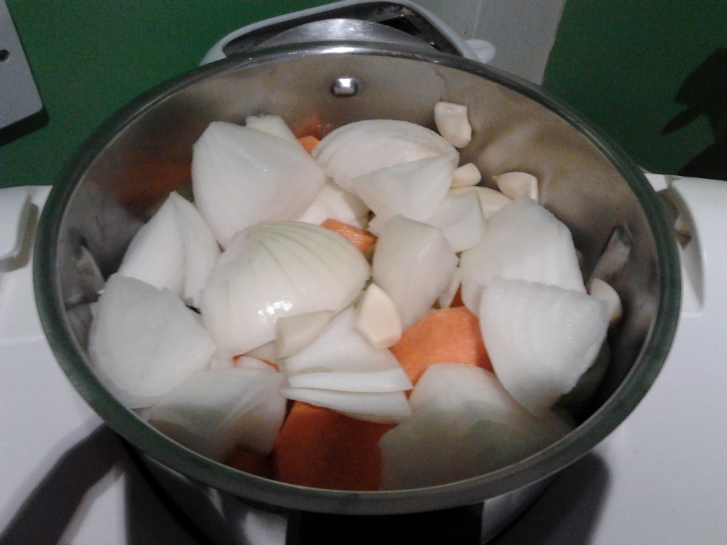 de agua ate tapar os legumes (a mim a agua ficou um pouco abaixo da marca dos 2L). Fechar o
