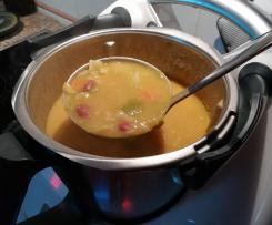 - Na varoma (junto da couve e cenoura) pode acrescentar 1/2 chouriço de carne, cortado às rodelas e na altura de triturar a sopa adicionar 2 ou 3 rodelas de chouriço à base 😋 dando assim um gostinho especial à sopa.