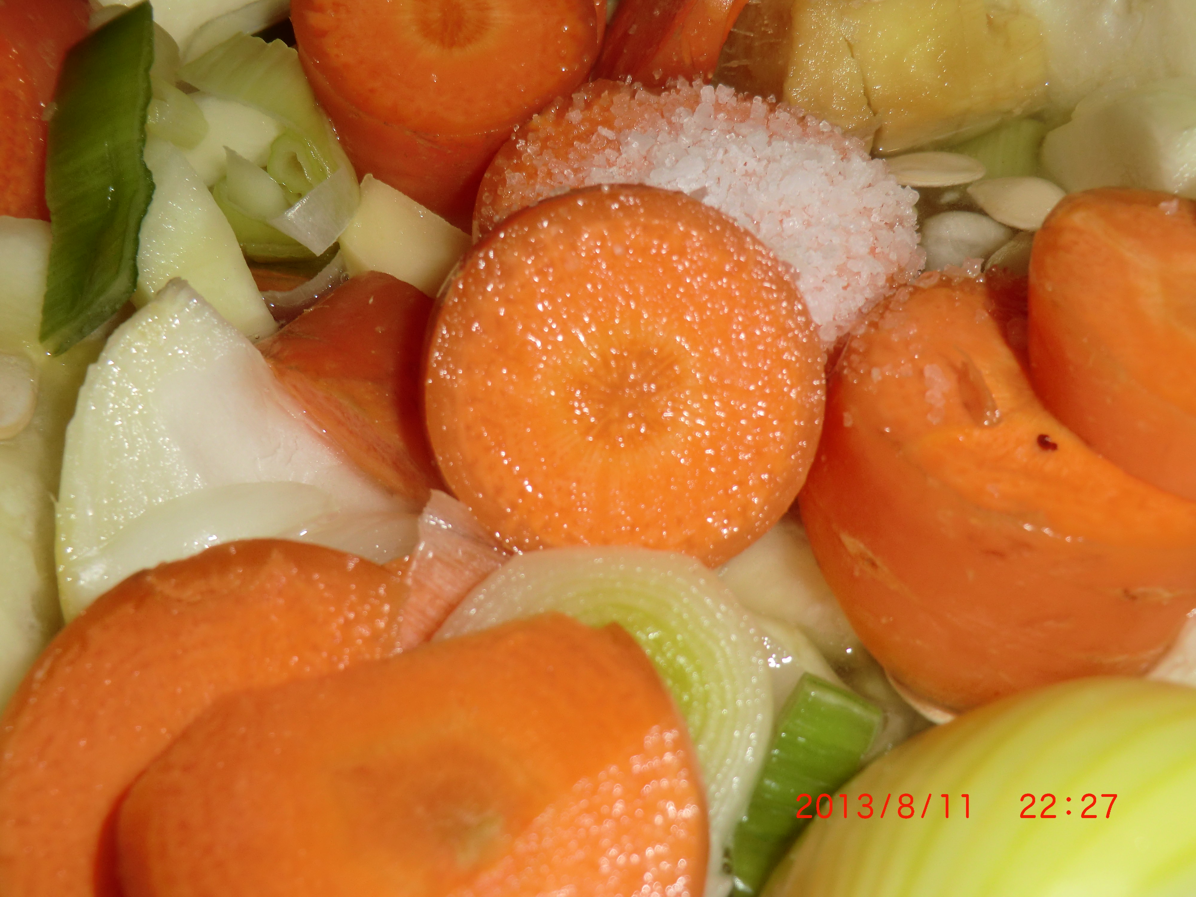 Alerto só para os cuidados a ter com a trituração da sopa que se deve ir progressivamente até à velocidade 7 no máximo, mas esta sopa fica só com os legumes meios triturados na velocidade 5!