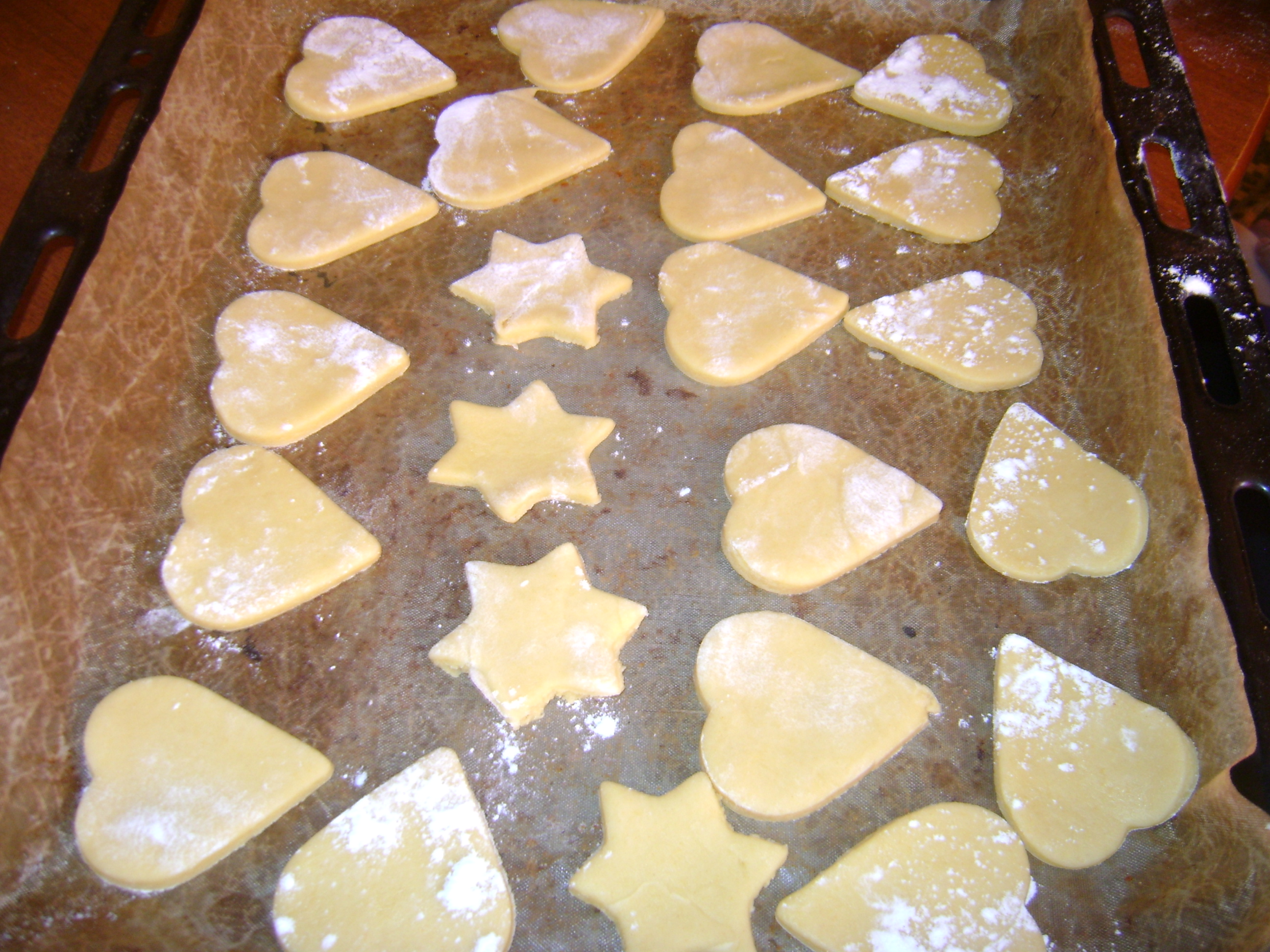 - Estenda a massa muito fina com um rolo e corte com cortadores para bolachas.