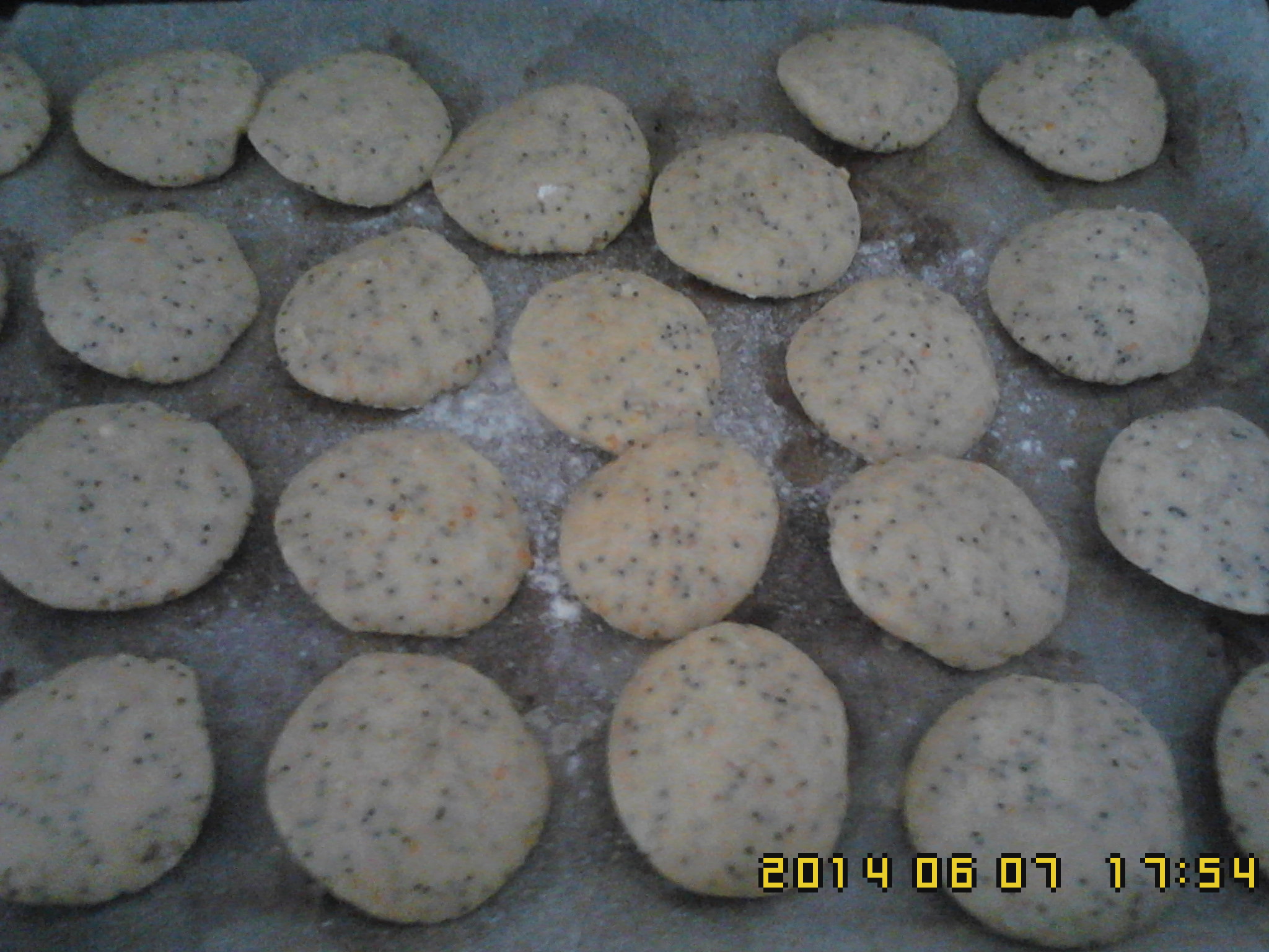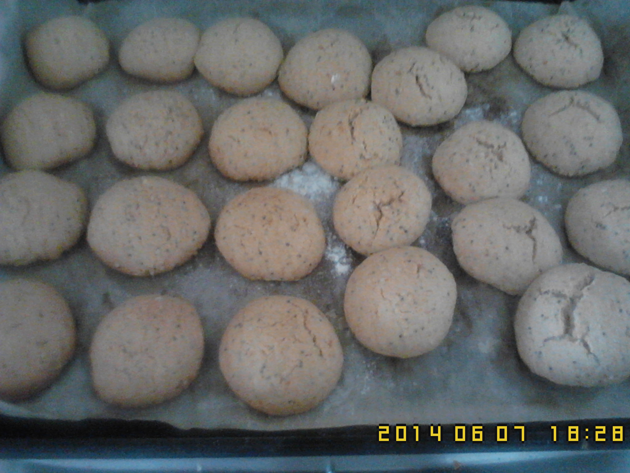 2) Junte,farinha p/bolos,mel,sementes de sésamo,papolias,ovo,manteiga,fermento p/bolos.20s-V6.Retire e amasse uns 10s.Comece a fazer bolinhas e espalme.Ponha no tabuleiro com uma folha vegetal,pouco de farinha.Forno.pré aquecimento 5m-180C.a seguir 20m- 200C.Retire e ponha num saco de papel.Bom apetite.