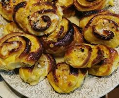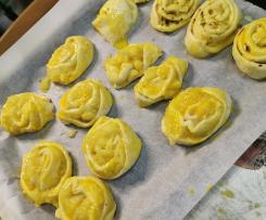 13mt 100°vel 1. Quando faltarem 2 mt acrescentamos a manteiga. Retiramos e deixamos arrefecer. - Numa superfície enfarinhada despejamos a massa e dividimos em duas partes, esticamos cada uma delas e cobrimos com o recheio .