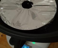 - Colocar no copo 500g de água e de seguida juntar o cesto com as cenouras cortadas em pedaços pequenos (rodelas cerca de 0,5 mm). Programar 40 min/100ºC/vel 1. Depois de cozido retirar e deixar arrefecer. (Pode ser feito de vespera).