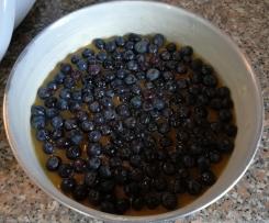 - Verter a massa por cima dos mirtilos e levar ao forno pré-aquecido a 200° durante 25 a 30 minutos (verificar a cozedura com o palito).