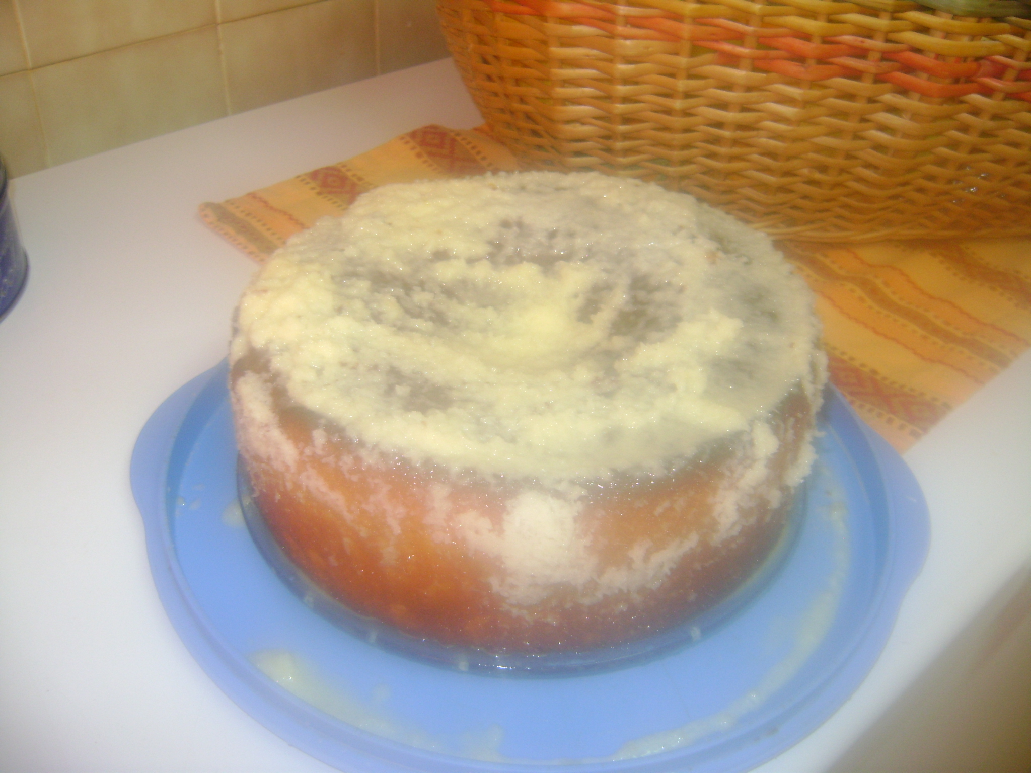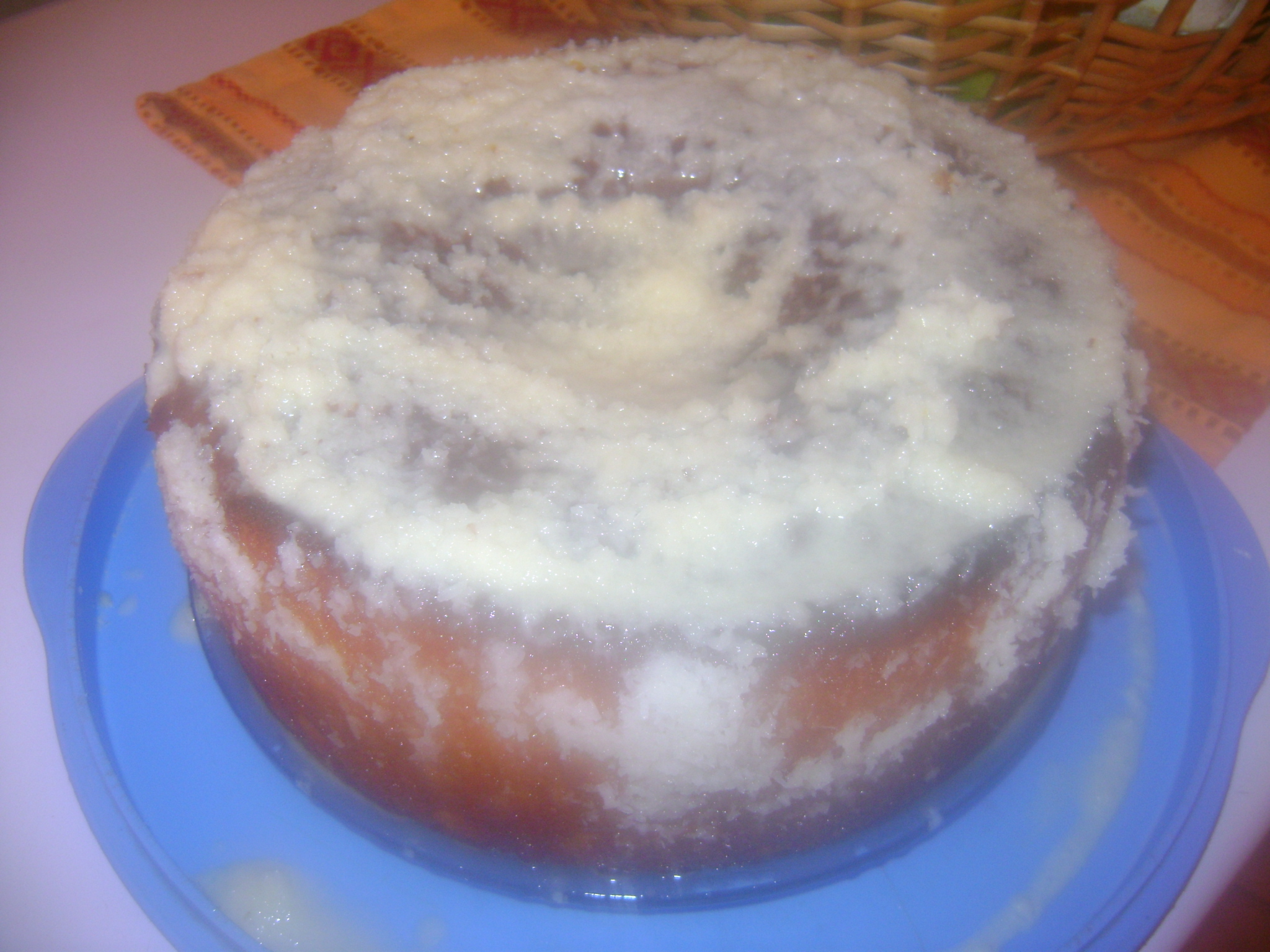 PREPARAÇÃO DA COBERTURA no copo da bimby coloca a margarina o açucar ,o côcô programa 5 minutos vel 2 37º junta a seguir as natas e programa 10 minutos as natas! Quando o bolo estiver cozido, retiro-o do forno, pico-o com um palito comprido (de espetadas), passa a faca à volta (para se descolar das paredes da forma) e rego-o com parte da calda. Depois desta ter sido absorvida, ao fim de alguns minutos, desenforma o bolo para um prato com abas e rego-o com a restante calda.