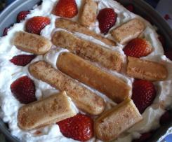 Coloque de seguida uma camada do creme que preparou. Por cima dessa camada coloque outra camada de dedos de dama molhados no xarope e bocados de morangos tb embebidos no xarope (imagem 3)