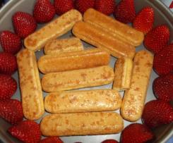 Num prato medio deite q.b de xarope de morango, vá molhando generosamente os dedos de dama e coloque-os no fundo da forma (imagem 2)