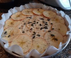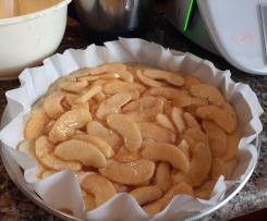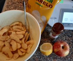 - - Descascar 4 maçãs, laminar finamente e ir regando com o sumo de limão. Adicionar as 3 c.sopa de açúcar e a canela e envolver. RESERVAR.