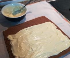 - Desenforme a torta sobre um pano, rechei com metade do ganache e enrole.