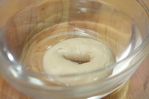 Teste os bagels colocando um num recipiente com água fria. Se este se afundar e não flutuar, volte a colocar no tabuleiro, aguarde cerca de 15 mnts e volte a testar.